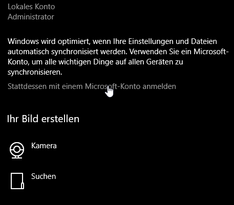 ich verzweifel hier gerade. Ich würde mich gerne anstellen mit meinem Lokalen, dem MS-Account anmelden.