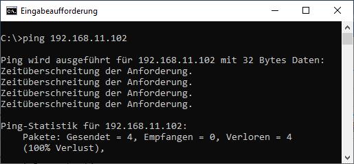 Auch in der ARP-Tabelle (cms: arp -a) ist die IP des Receivers nicht gelistet und selbst ein löschen des Caches hat keinen Erfolg.