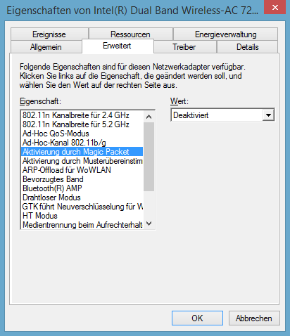 Sonst gibts im Handbuck keine Einträge zu wake on LAN. WoL gibts gar nicht-