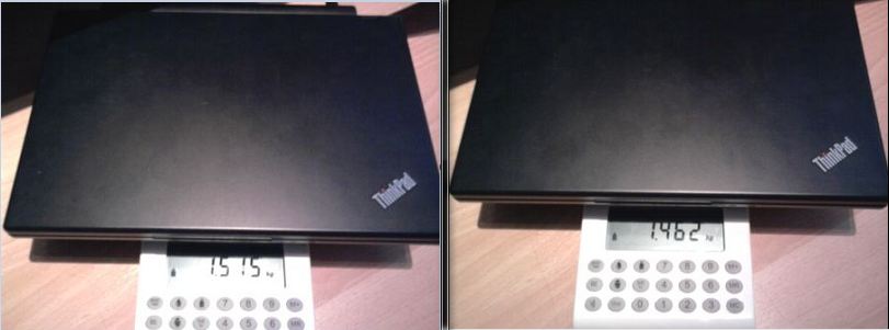 Während die Festplatte auf die 15 Gramm schwere Halterung inklusive der dazuhörigen 6 Schrauben angewiesen ist, tut es bei der SSD auch ein einfaches Klebeband. Somit verringert sich das Gesamtgewicht des Notebooks von exakt 1,515 kg auf 1,462 kg (Rechnerisch (1,515 - 0,056kg) sollten es eigentlich 1,459 kg sein). Wenn ich demnächst einen Torx Schraubenzieher in die Finger bekomme werde ich die 1,8“ Platine aus dem SSD Gehäuse holen und nackt verbauen (dann nur noch geschätzt 20 Gramm), was das Gesamtgewicht auf nur noch 1,420 kg reduzieren wird. Das wären dann knapp 100 Gramm weniger Gewicht, was das Transportieren des Notebooks etwas komfortabler machet. (Das Demontieren der SSD bedeutet natürlich Garantieverlust)