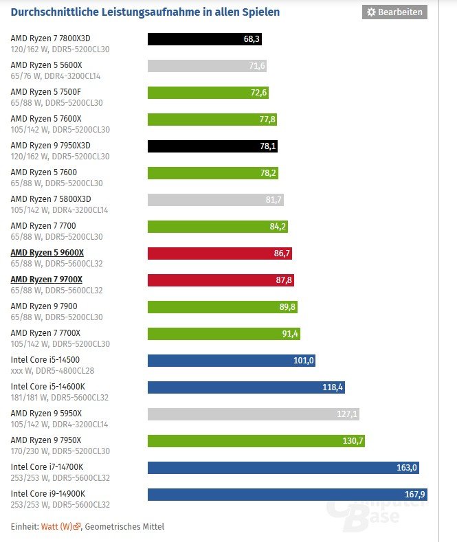 Ist dann der 14600KF geworden und ich hab den alten DDR4 RAM behalten. Ich bin sehr zufrieden. Man braucht sich aber keine Illusionen machen: Dass hier Einzelne bzw. ein Einzelner behauptet der Intel würde energieeffizienter arbeiten als die Ryzen-Pendants, das mag im Idle stimmen. Sobald aber die CPU genutzt wird, vor allem zum Spielen, brauchen die Intels der 14. Generation deutlich mehr.