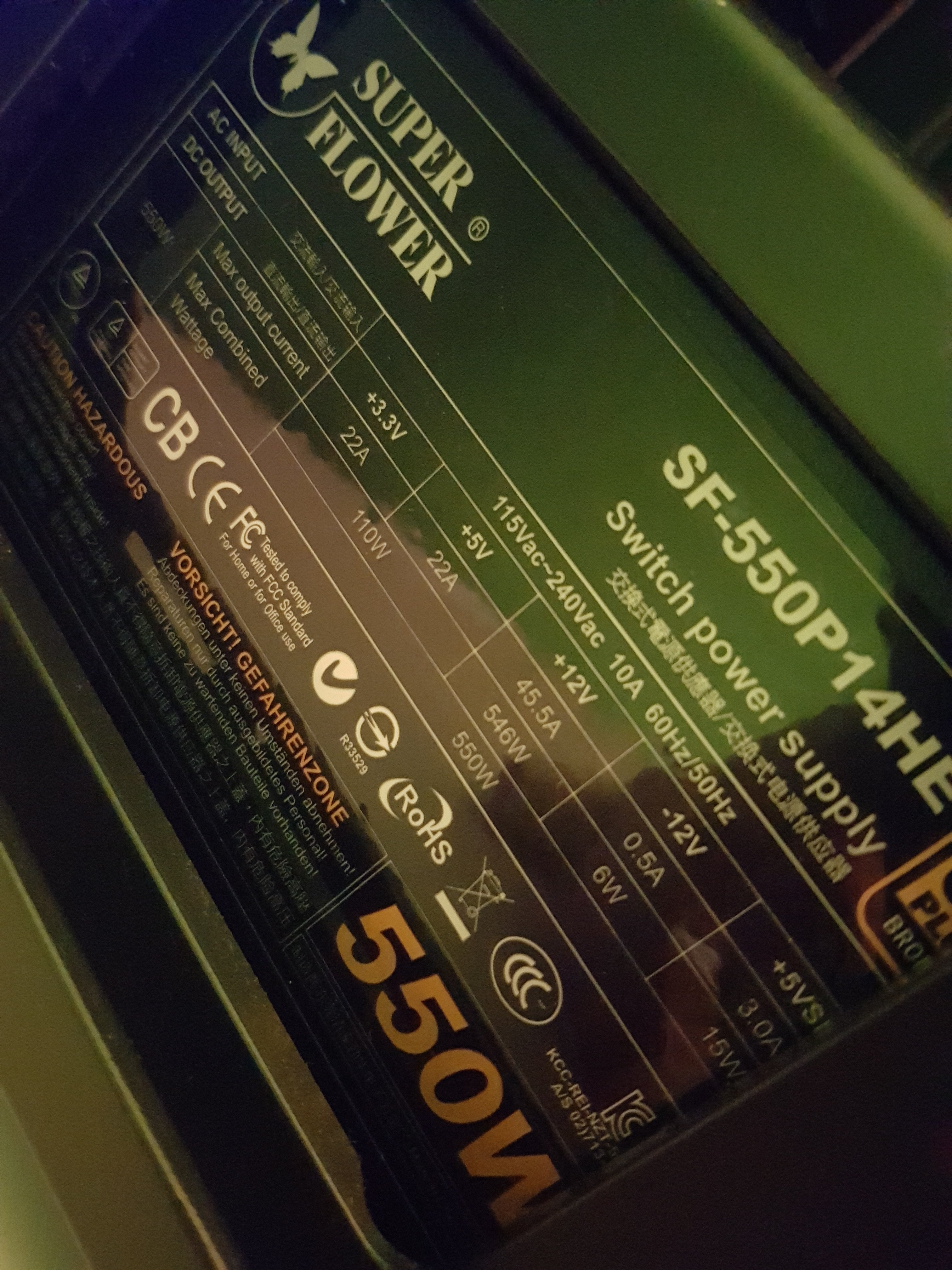 Ich habe 16 gb Ram und ein 450 watt corsair markennetzteil
