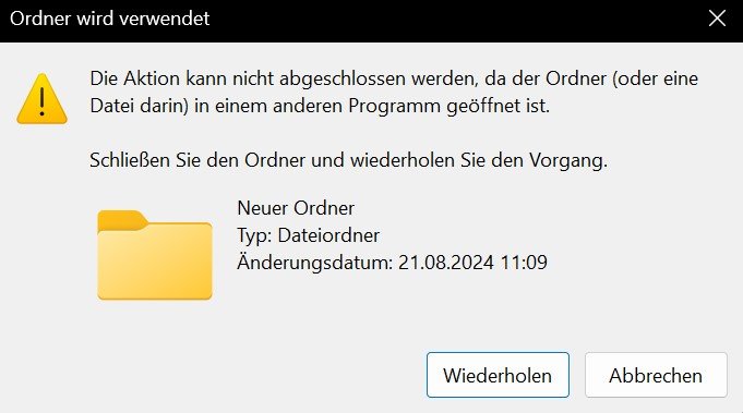 Möchte ich eine Datei, egal welche, im Namen verändern, kommt diese Fehlermeldung: