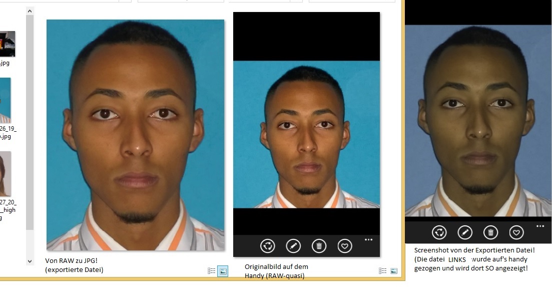 Ziehe ich dieses JPG aber auf einen USB-Stick zum Drucken bei einem Fotodrucker bzw. ziehe ich die JPG auf mein Handy und öffne sie Dort sind die Farben sowas von Eigenartig! einfach zu Dunkel und die Bilder gehen alle in Richtung Gelbton!
