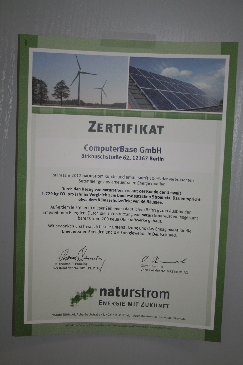 Ja, richtig, die meisten im Team arbeiten auch von "zu Hause". Seit Anfang 2012 haben wir aber auch ein kleines Team in einem Berliner Büro zusammen gebracht, um dem Anspruch, den wir und die Community an ComputerBase haben, gerecht zu werden und uns ständig weiterentwickeln zu können. Daher stammt auch das Bild vom Naturstrom-Zertifikat