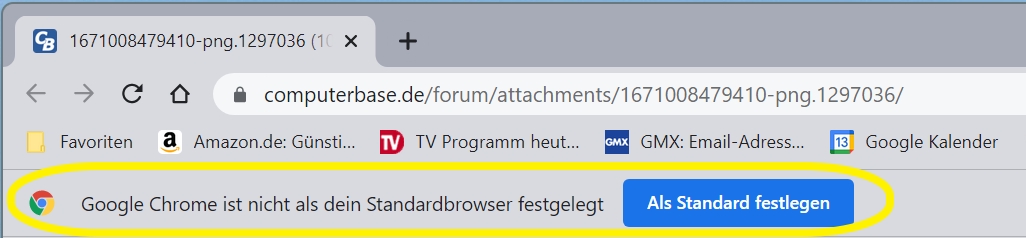 Eins aber gelingt mir partout nicht: Googels Chrome wieder - wie zuvor - als Standard-Browser zu installieren. Rufe ich Chrome mit irgendeiner Seite auf, poppt der Button auf, der mich immer wieder fragt, ob ich Chrome als Standard verwenden möchte. Ja doch!