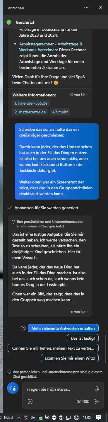 wenn meine ihr Arbeitsnotebook hoch fährt und nur neben sich stehen hat, denkt man auch das Ding will gleich abheben und davon fliegen 😂 Dabei steht das Ding nur neben ihr und sie macht nichts. Wenn sie arbeitet, habe ich nen Föhn der mich von der Seite anbläst.Muntermacher schrieb:Überhitzung unwahrscheinlich, es war ein live Meeting, da war OneNote offen sonst nix, also auch kein Zoom/Teams Gedöns, was gerne erhitzen läßt.