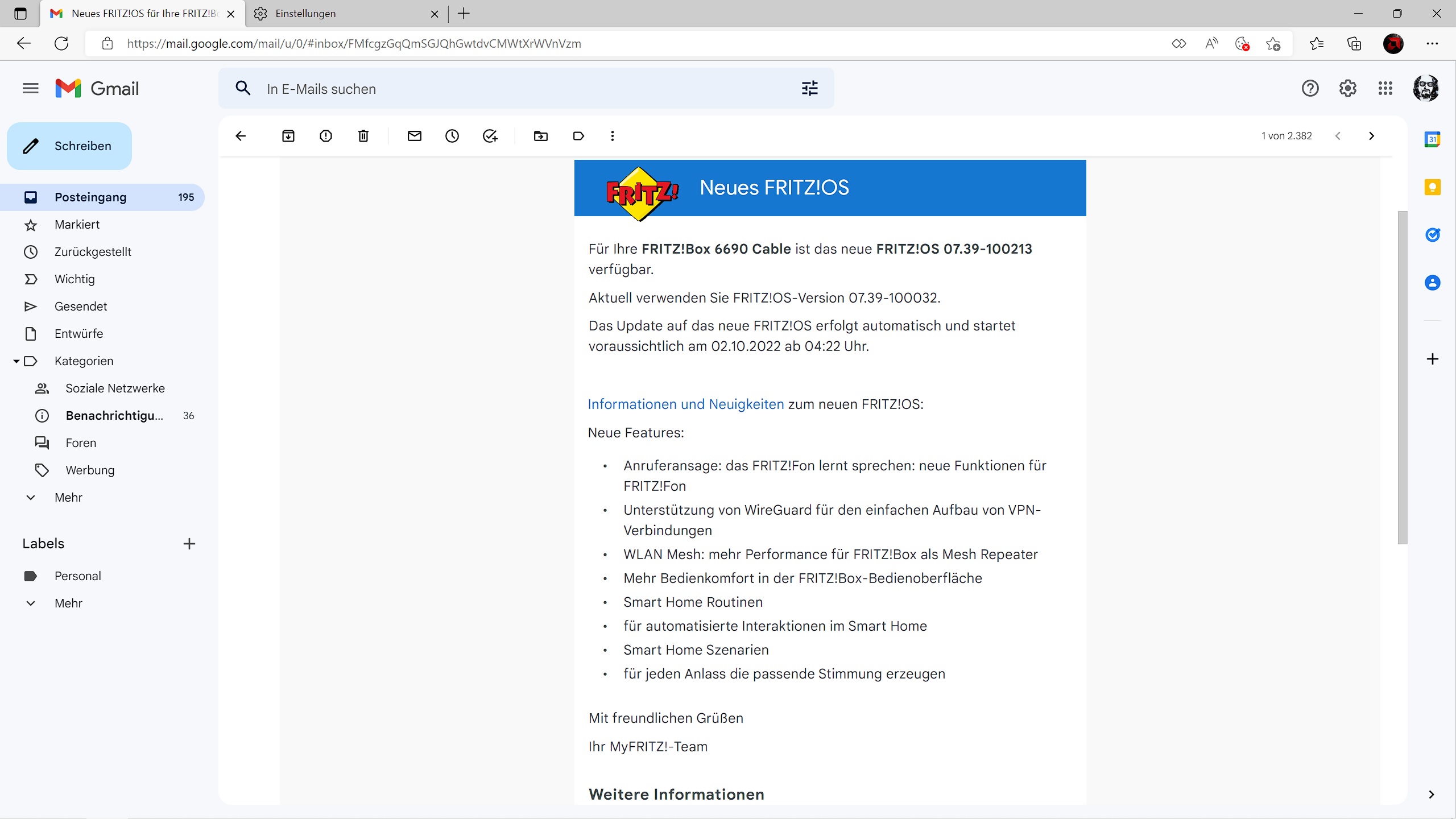 Ahoj Sven !SVΞN schrieb:AVM hat mit dem aktualisierten Fritz!Labor 7.39 eine neue Beta-Firmware für die ADSL- und VDSL-Router Fritz!Box 7590 und 7530 sowie die Kabelrouter Fritz!Box 6690 Cable, 6591 Cable und 6660 Cable veröffentlicht. Auch die beiden WLAN-Repeater Fritz!Repeater 3000 und 2400 erhalten die neue Preview auf Fritz!OS 7.50 mit WireGuard.