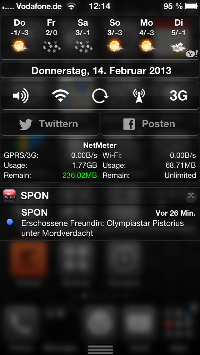 BlurriedNCBackground ->macht das NotificationCenter je nach Wunsch, durchsichtig / milchig (Bild zeigt meine Einstellung, leicht durchsichtig)
