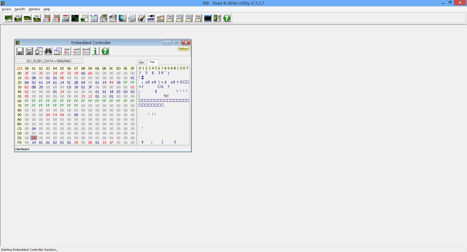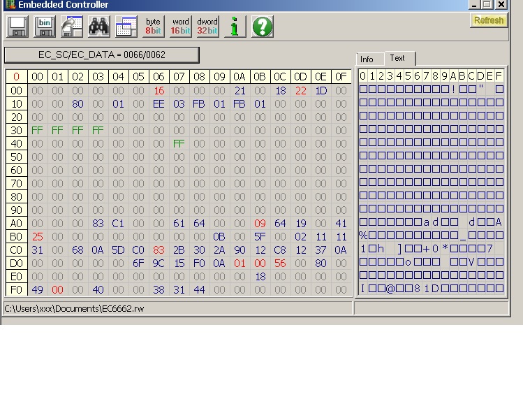 3) Die Vergleichsfunktion von R&W funktioniert ja so, dass der gespeicherte EC-Table angezeigt wird und mit dem Aktuellen verglichen wird. Unterscheiden sich die aktuellen Register-Werte von denen des gespeicherten Abbildes, sind die Register rot unterlegt. Sind die Register-Werte wieder deckungsgleich verschwindet auch die rote Unterlegung -> Abwarten, bis der Laptop sich wieder in idle Lüftergeschwindigkeit befindet und schauen, welche Register ihre rote Unterlegung wieder verloren haben.