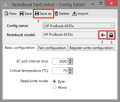 Dazu einfach im Config Editor eure Config öffnen und im "Register write configuration" Tab, bei beiden vorhandenen Einträgen die "write occasion" auf "OnWriteFanSpeed" setzen.