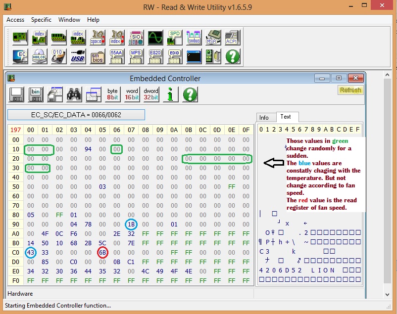 per RWeverything kann ich einfach die Register nicht finden, da sich permanent 6 verschiedene Register ändern.