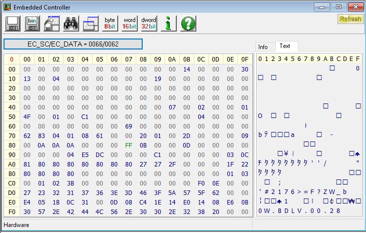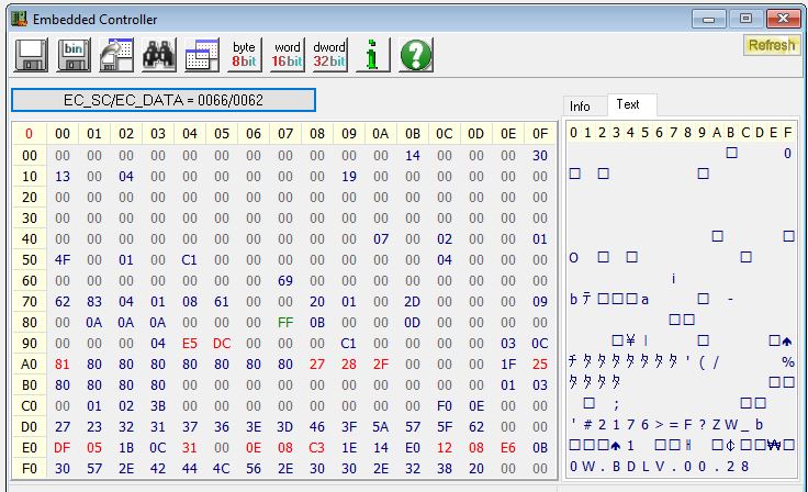 Bei mir (HP Omen 15 5001ng Notebook) sehen die Register vom Embedded Controller in RW-Everything so aus: