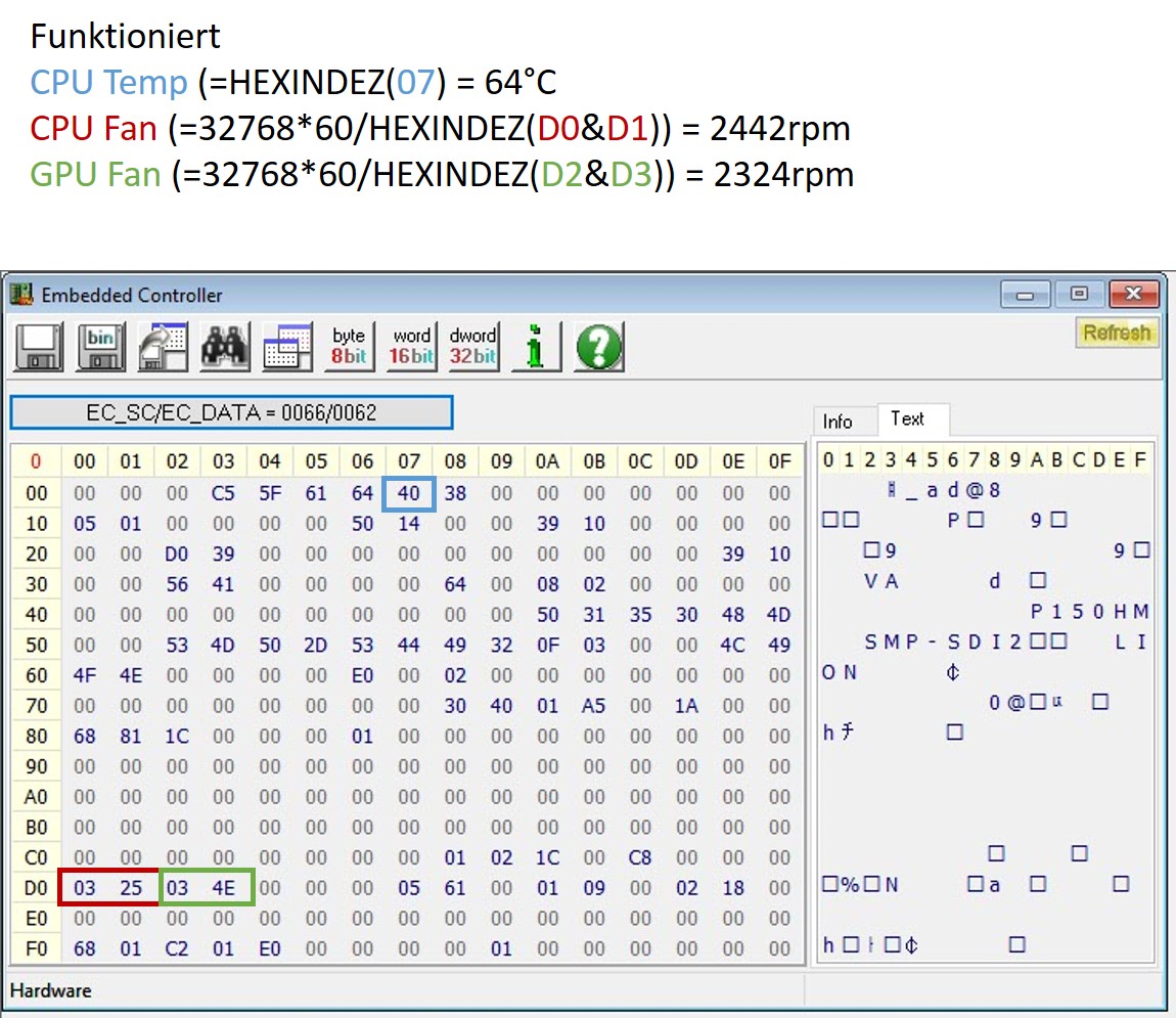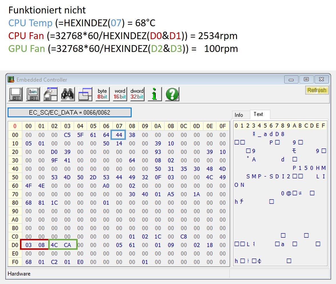 Ich habe zumindest schon mal herausgefunden, dass das Register 15 zum Einschalten des Manuellen-Lüftermodus zuständig ist.