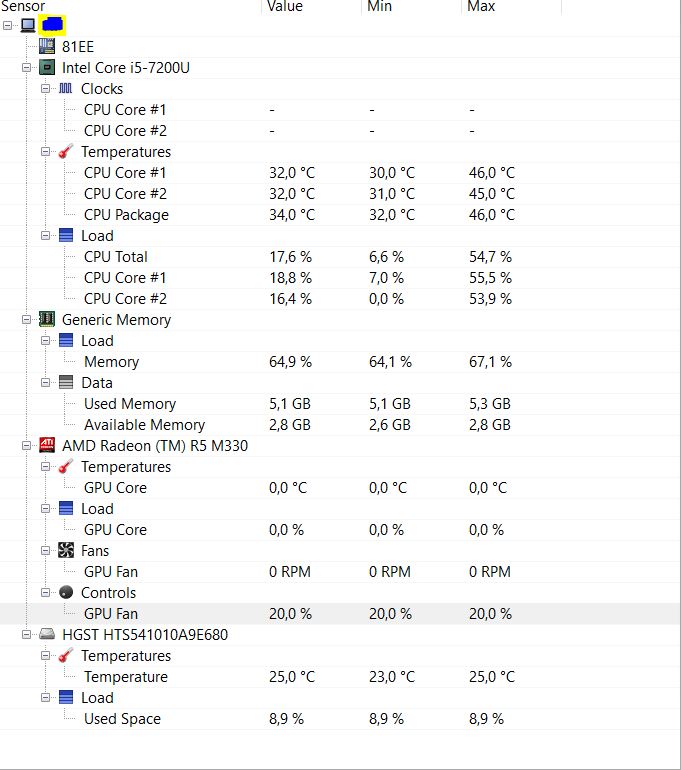 Ja ich meine Sensoren. Infrage kommen alle bis auf die Sensoren der GPU, weil dem NBFC service der Zugriff darauf verweigert wird.