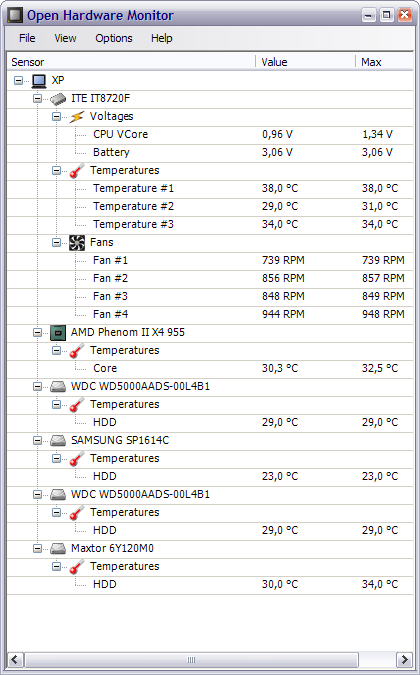 Also bei mir werden nur die CPU- und HDD-Temperaturen angezeigt, dafür aber korrekt.
