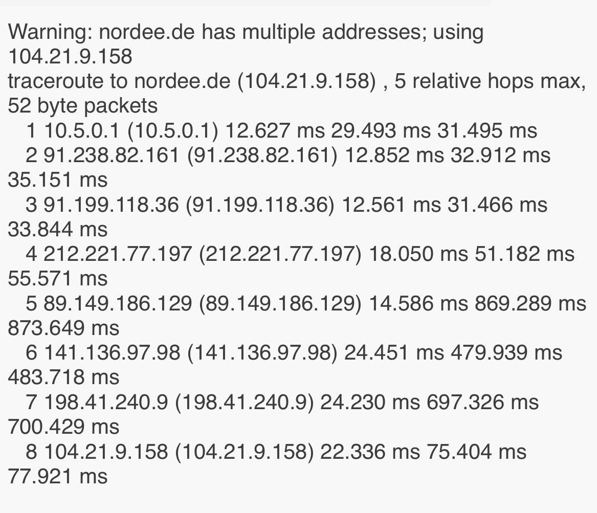 traceroute to nordee.de (104.21.9.158), 30 hops max, 60 byte packets