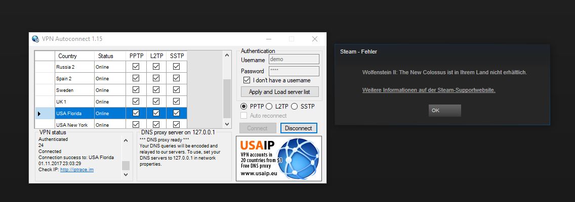 Habe mir gerade die uncut Version von Wolfenstein 2 gekauft und den Key auch erfolgreich, mit aktivierten FlyVPN, bei Steam aktiviert. (Ich bin mir dessen bewusst, das es die Sperrung meines Accounts bedeuten kann)