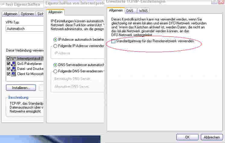 also ich habe da mal ne frage was VPN betrifft. Wenn ich mich mit VPN von zuhause in die Firma einwähle empfängt meine normale DSL verbindung irgendwie keine Signale mehr. eMule hört z.B. auf zu saugen... alle Chat-Programme setzten aus und E-Mail`s kann ich auch nicht mehr abrufen. Aber die Verbindung wird nicht getrennt.