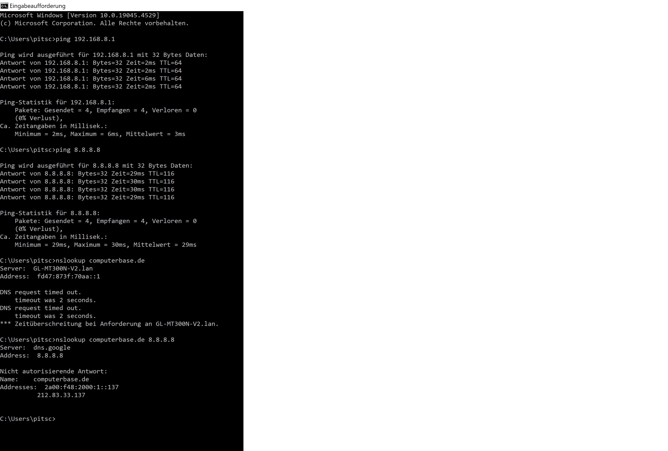 Deswegen ja die Testkommandos. Wenn du wissen möchtest was schiefgelaufen ist, musst du das näher untersuchen. Kannst du das nicht alleine, helfen wir dir gerne dabei. Allerdings musst du uns dabei helfen, dir zu helfen, weil wir nun mal nicht an deinem PC sitzen.