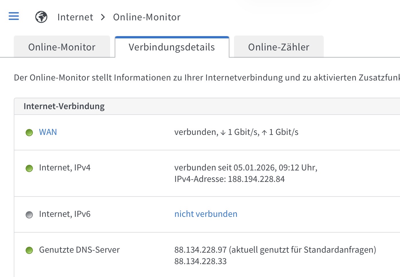 IPv6 Unterstützung ist in der FB aktiviert.