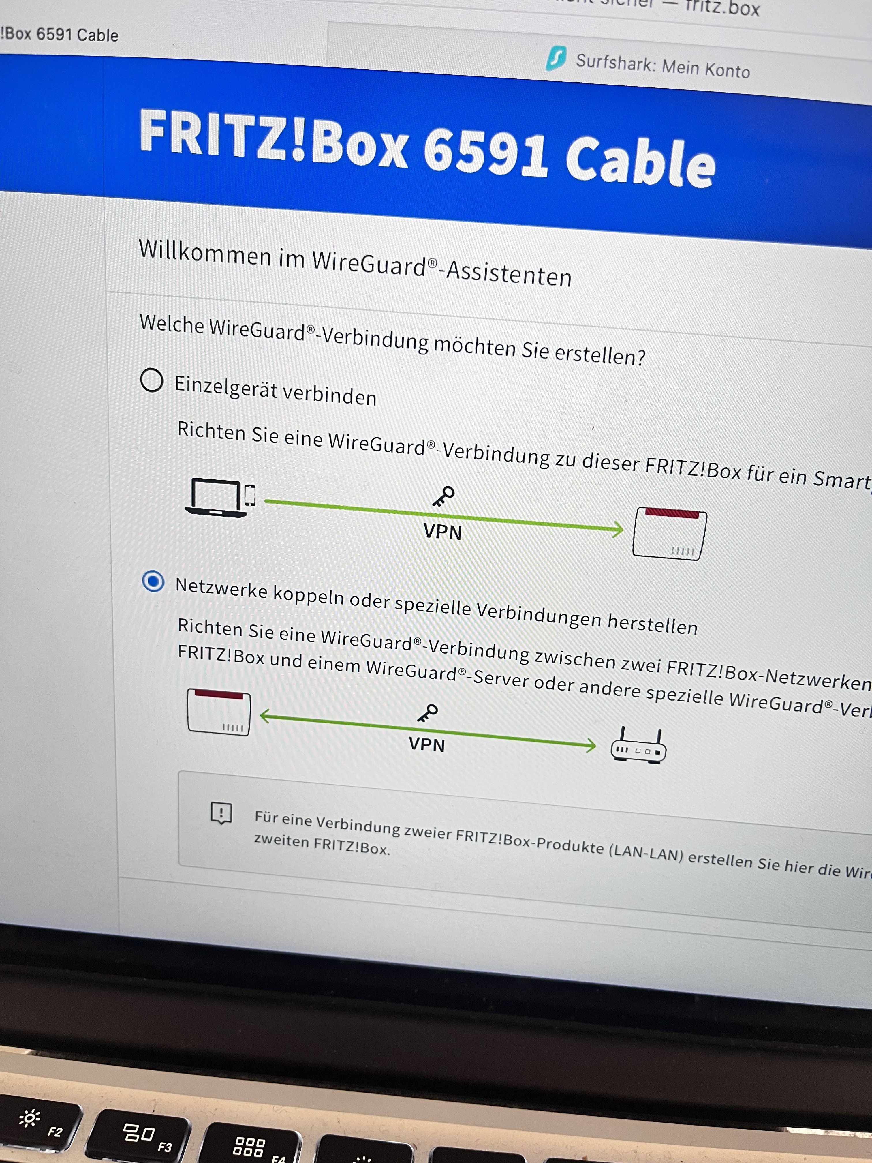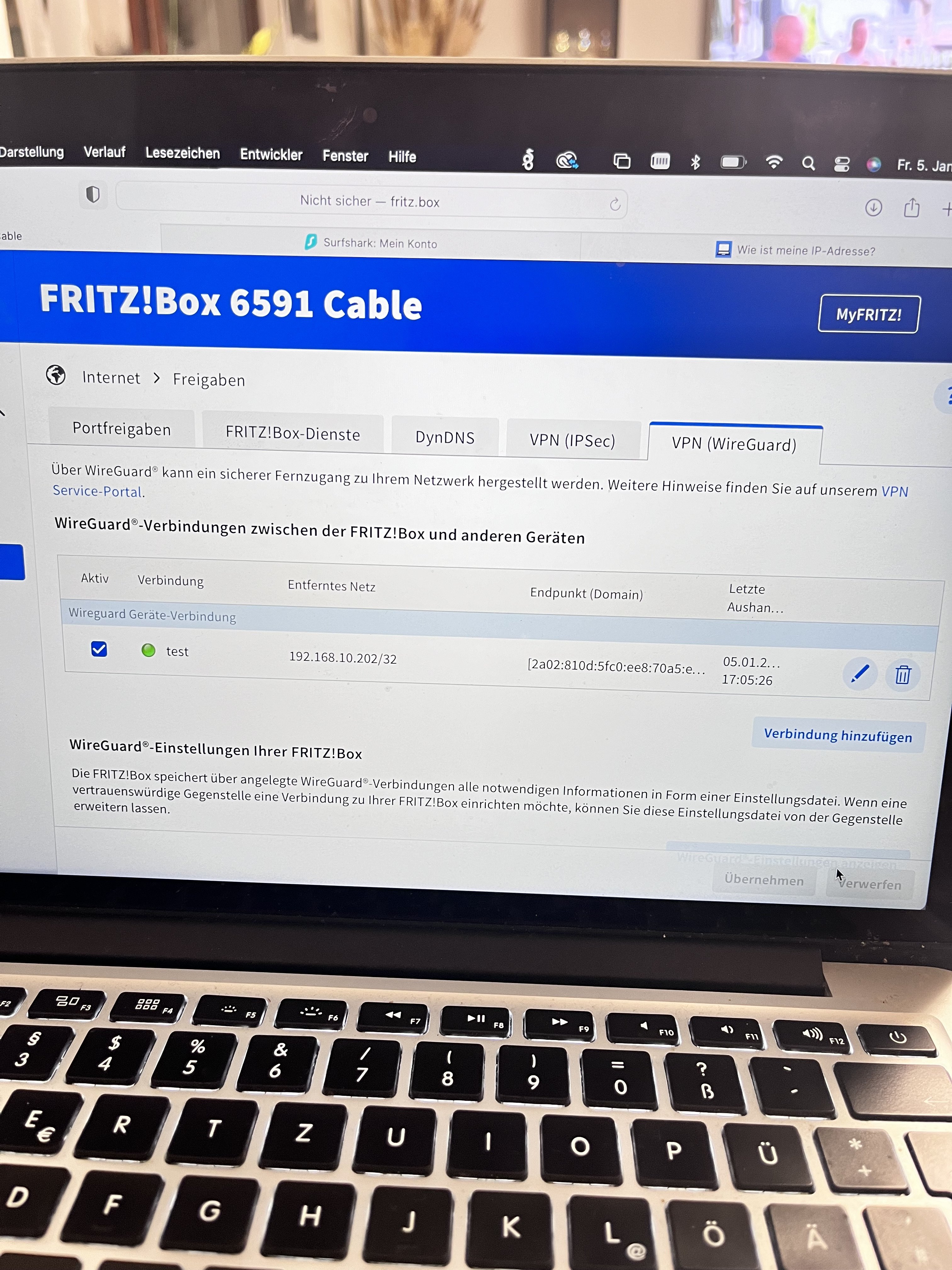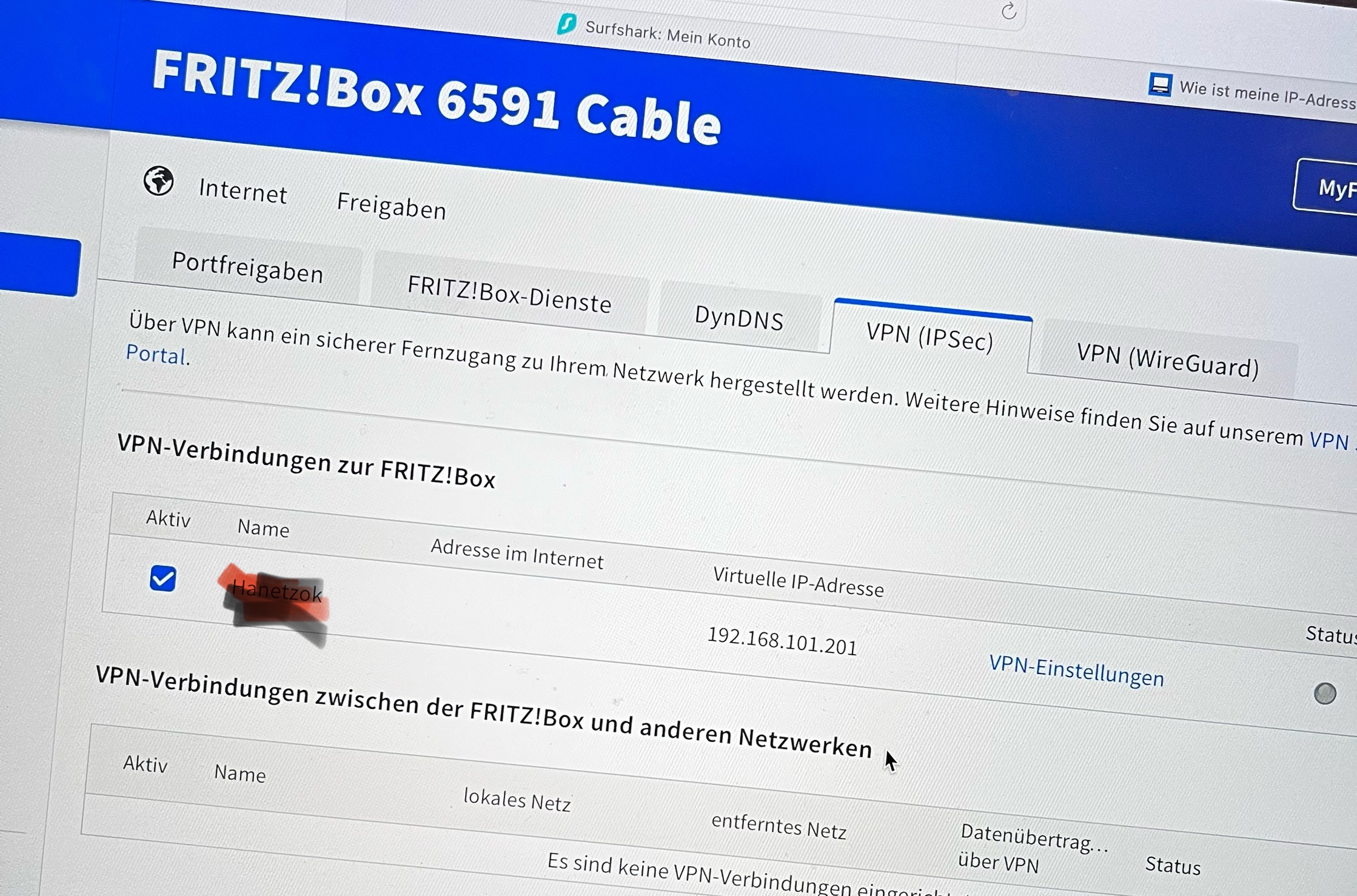 ich habe eine Fritzbox 6591 (aktuelle FW). Nun wollte ich eine VPN Verbindung herstellen.