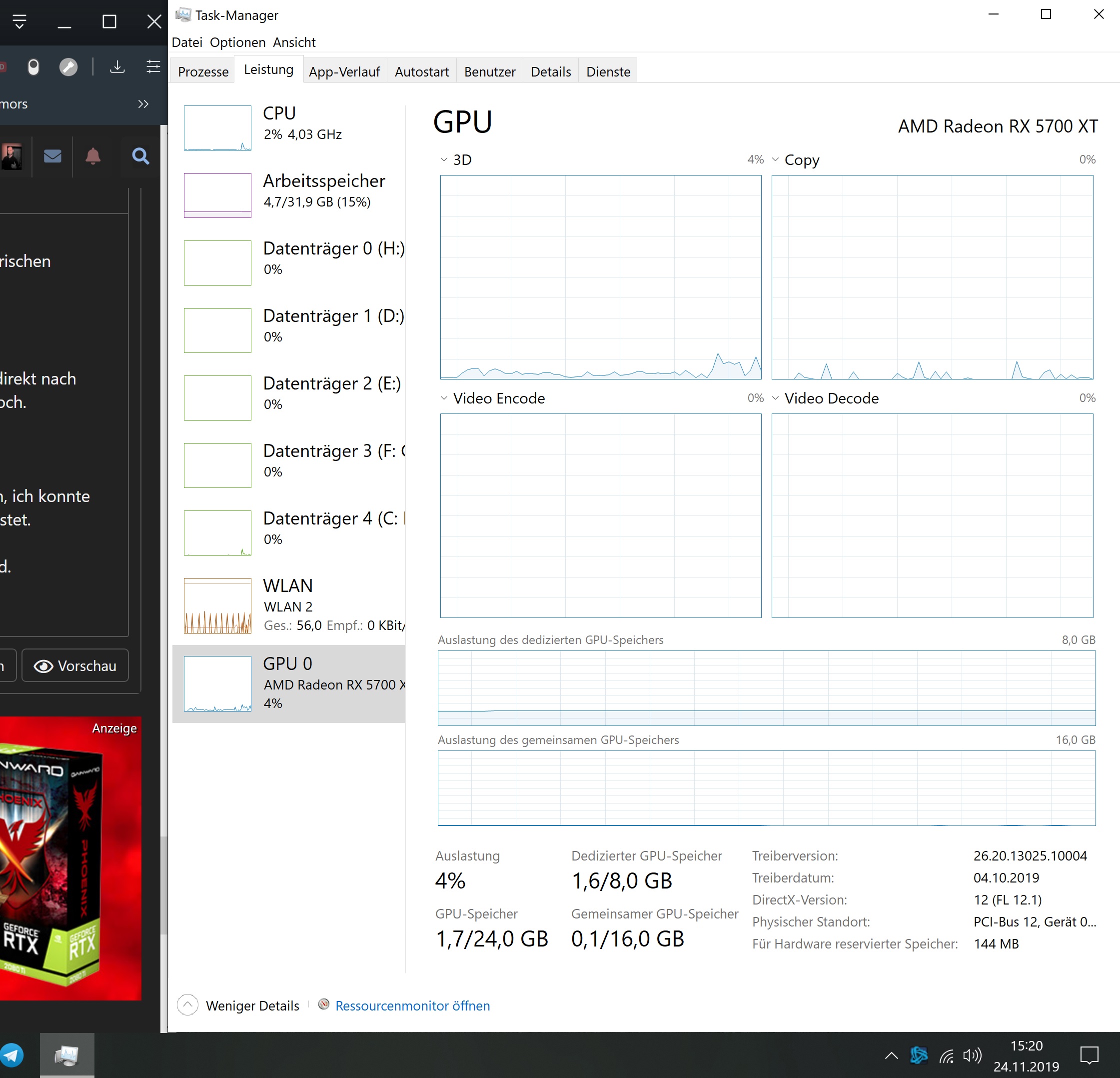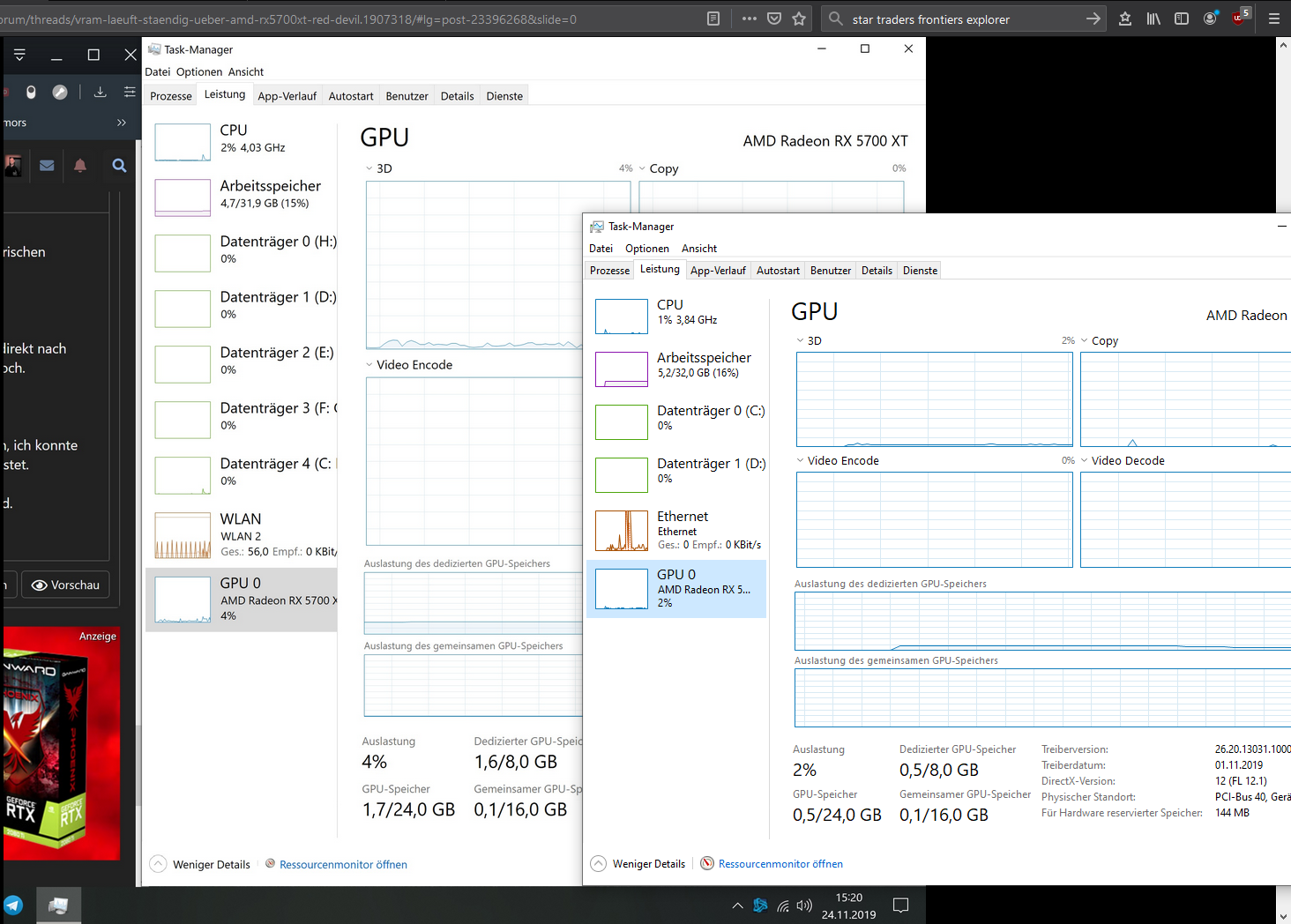 Treiber sowie Bios ist aktuell (R7 3700x, 570 Gaming E, 32 GB DDR4 3333)