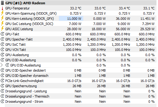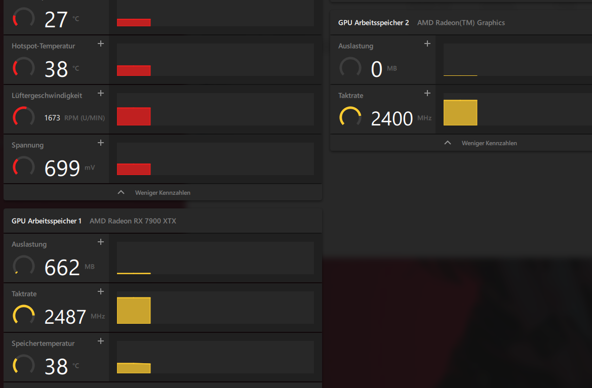 Sollte ich meinen Hauptmonitor alleine angesteckt haben dann ist die Taktrate komplett Normal aber stecke ich einen weiteren Monitor an stuckt es auf 2486MHz siehe Bild.