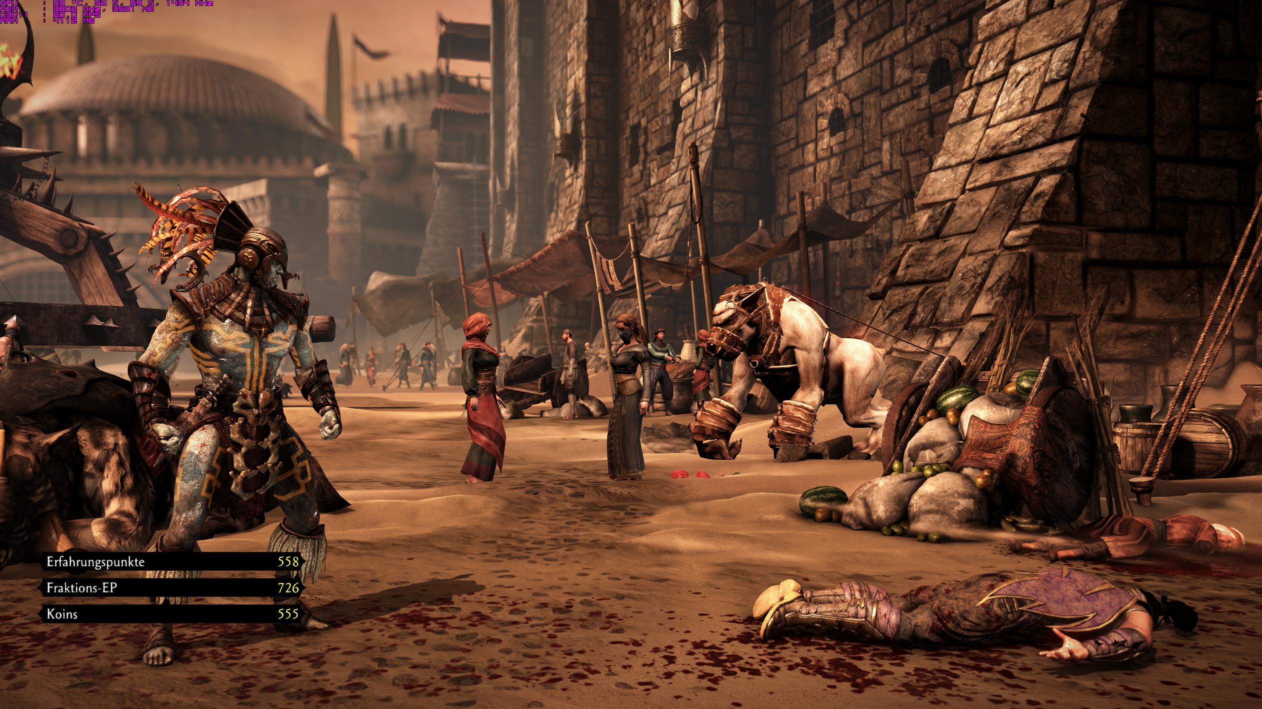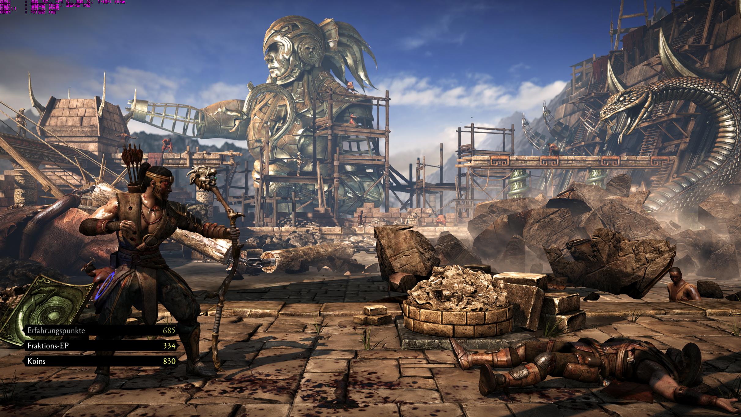 Mortal Kombat X @1440p; Ingame Max; VSync off. Wie man sieht, erreicht man in Kämpfe maximal 60FPS. Reicht aber völlig aus & selbst mit DSR @2160p (Faktor 2.25;Schärfegrad 26) lässt sich das Game mit gleichen Settings noch hervorragend daddeln ... :-)
