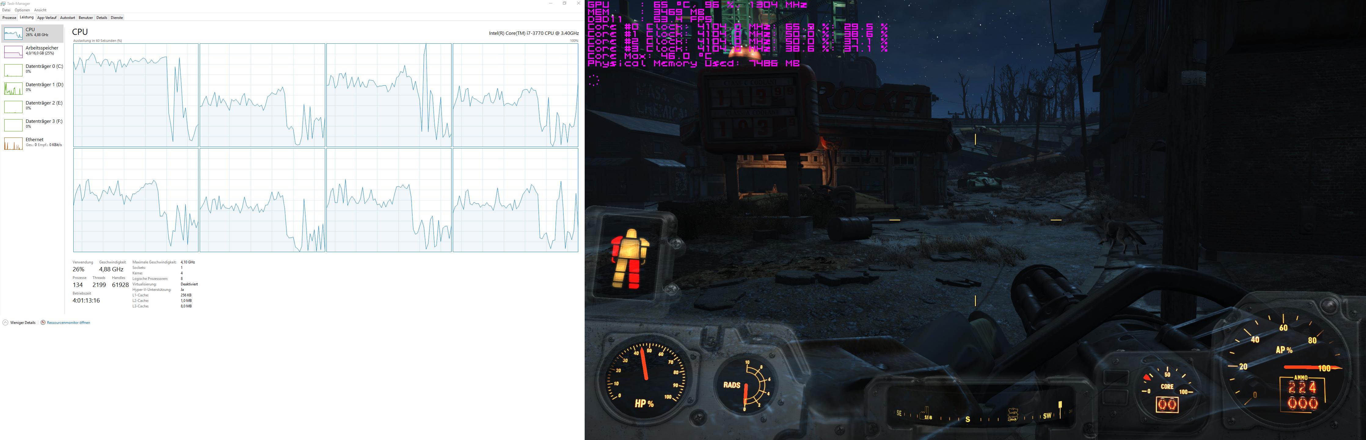 Aber all das lief mühelos ohne jegliche Probleme oder Nachteile zu meinem alten Core i7 4820k @ 4.300 Mhz.