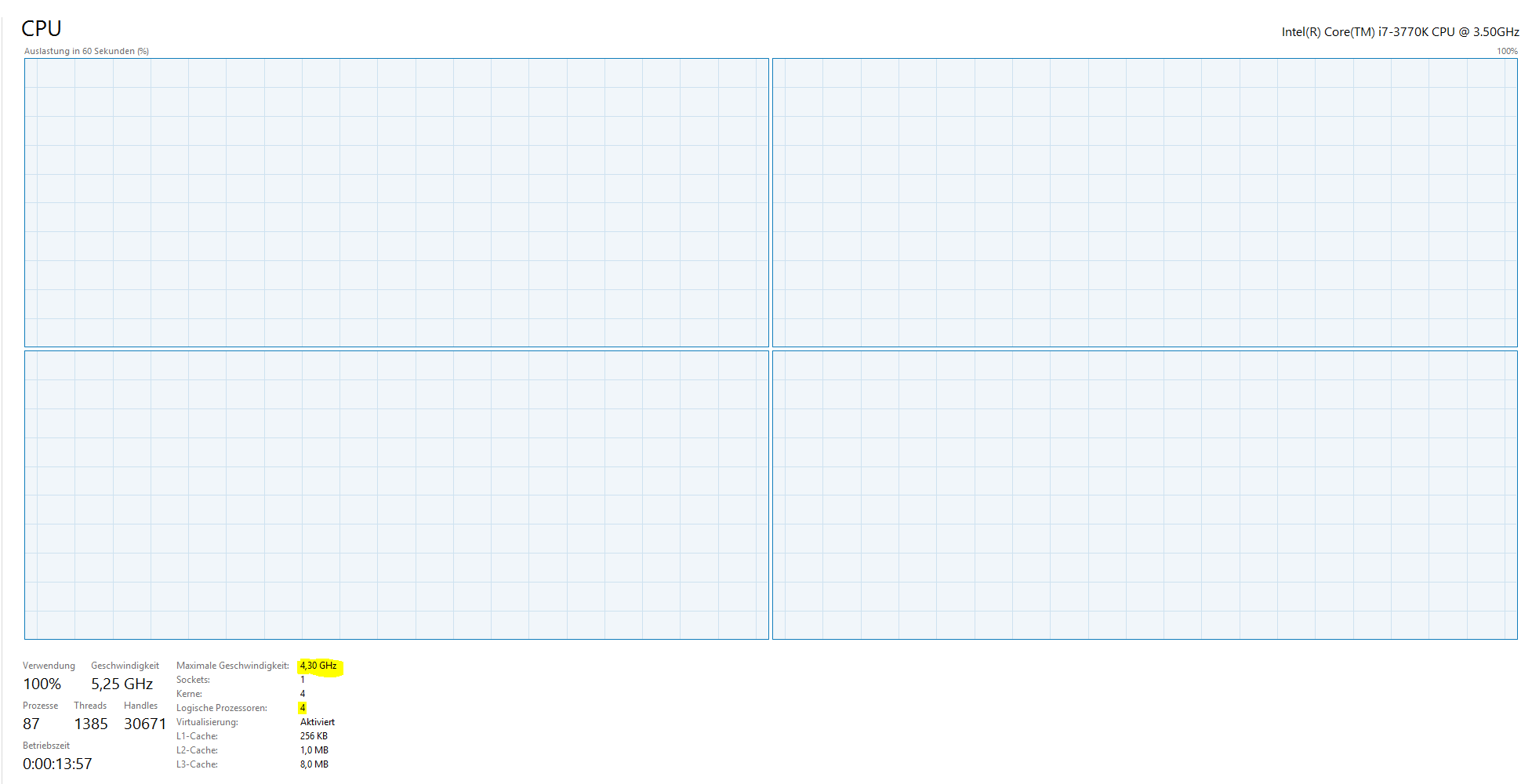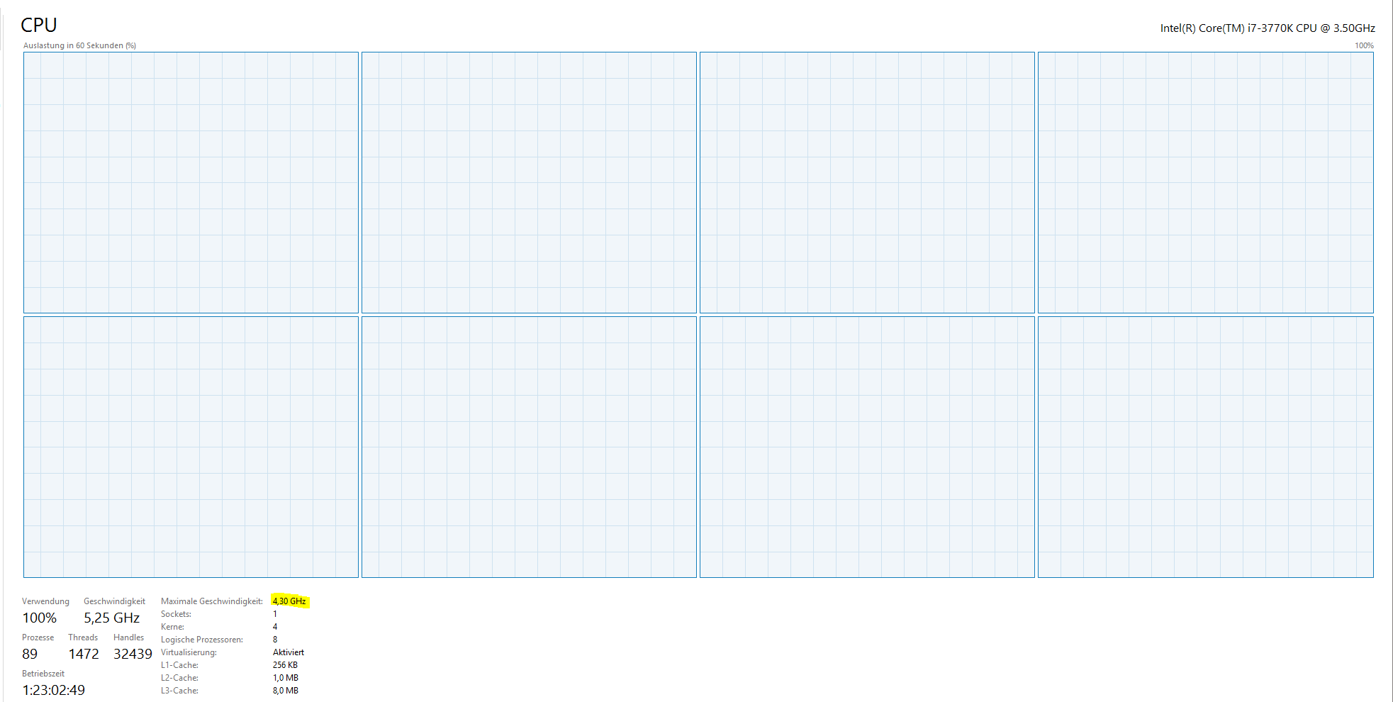 Beispielbildchen ist @Primelast & lt. Geschwindigkeitsangabe würde da meine CPU mit 5,25GHz takten. Tatsächlich anliegender Takt ist jedoch 4,3GHz & ich hab das mal entsprechend markiert.