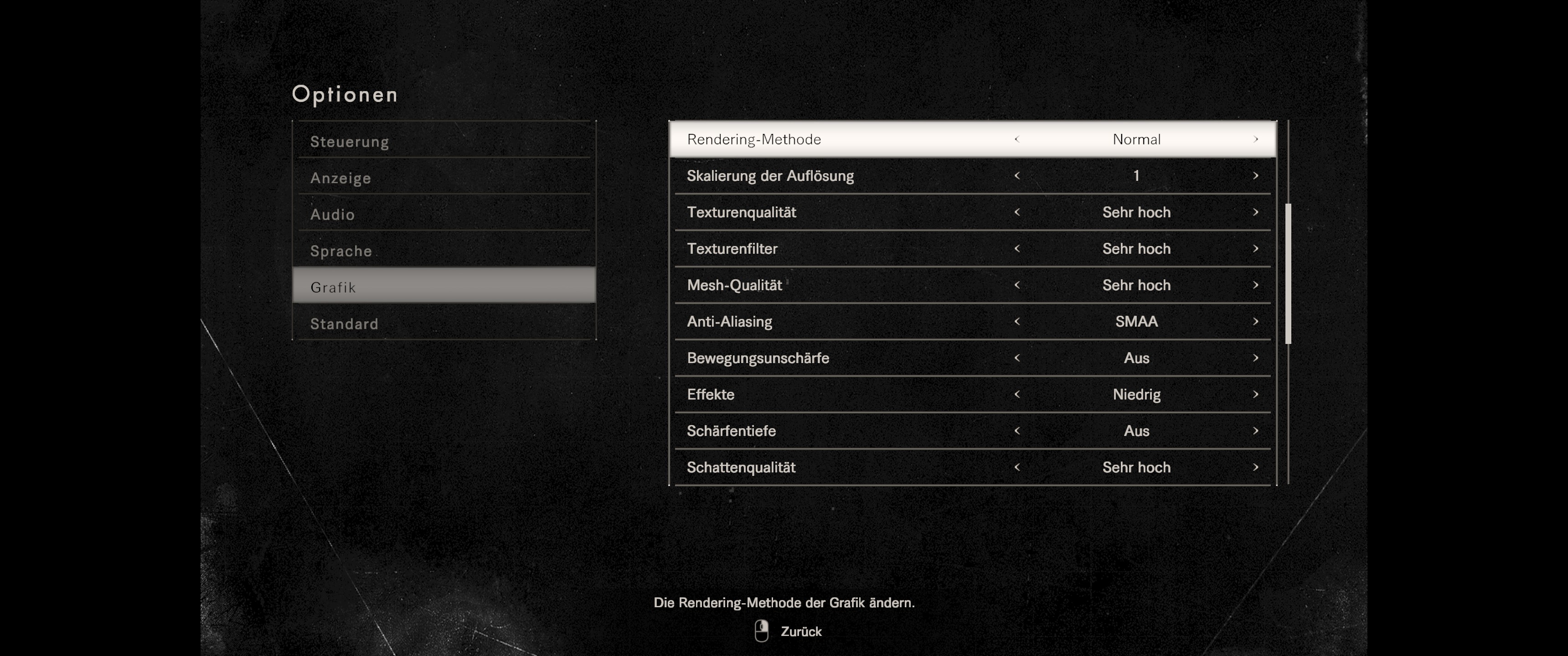 alles auf Hoch bzw. Ein außer Renderingmethode, das steht auf Interlacing