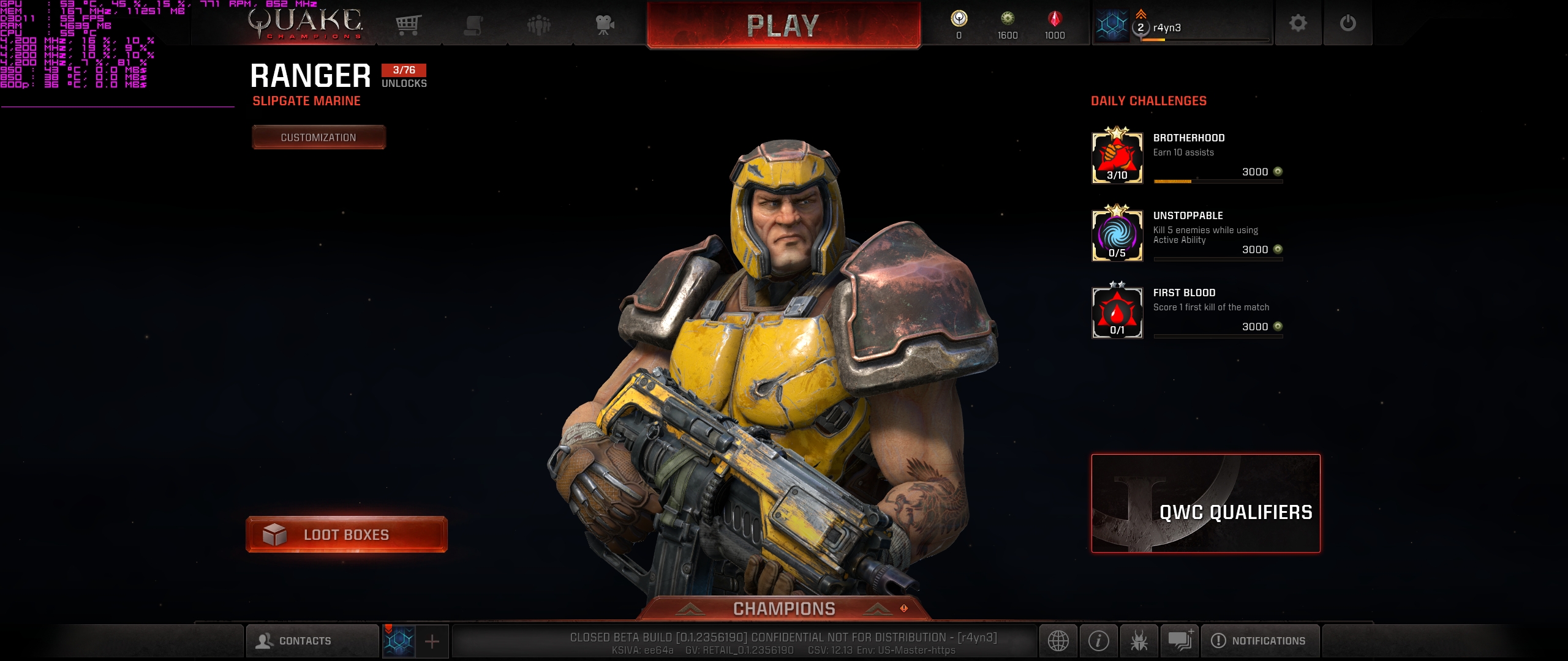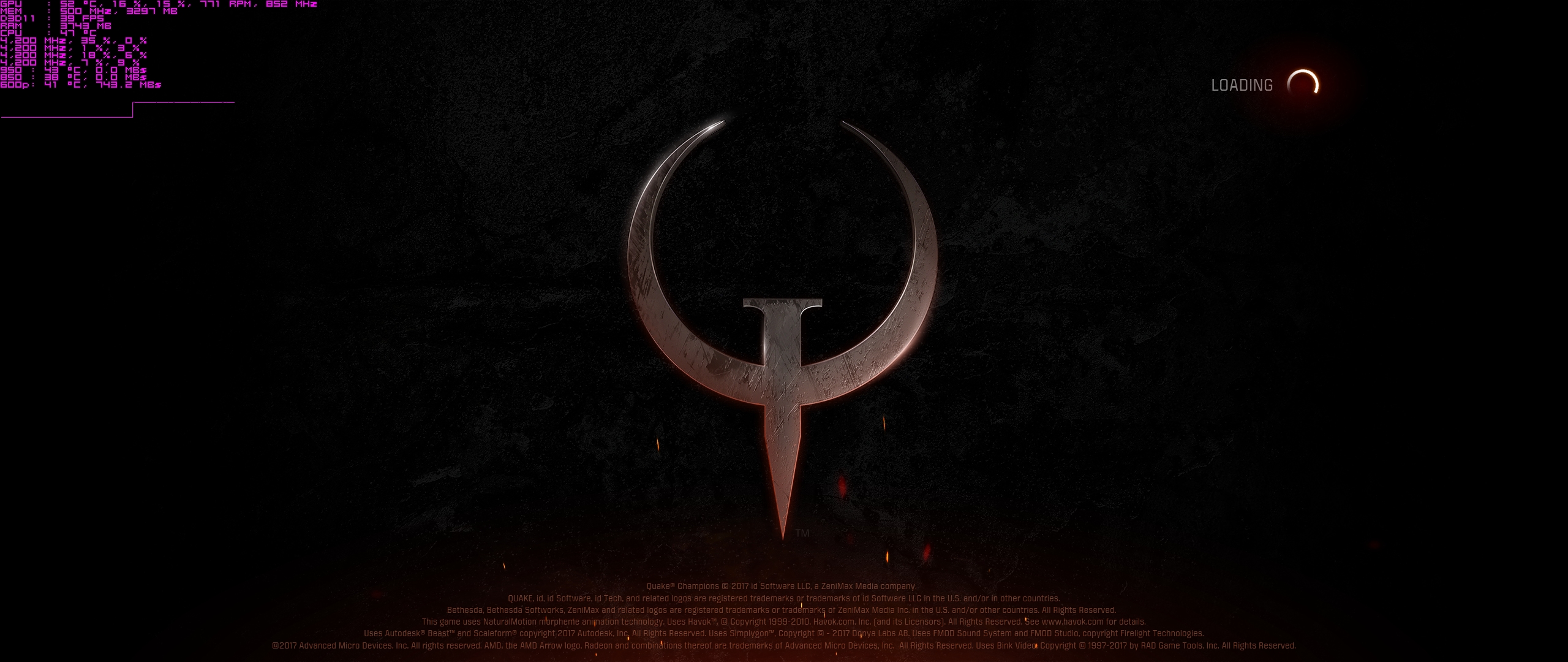 Quake Champions Beta, im Hauptmenü bereits 11,2GB Vram. Beim Ladeschirm zum Hauptmenü, man glaubt es kaumu, satte 750MB/s von meiner popel Intel SSD. Ein Blick in die Spieledaten macht es gleich klar, 1 Datei mit 15,2GB.