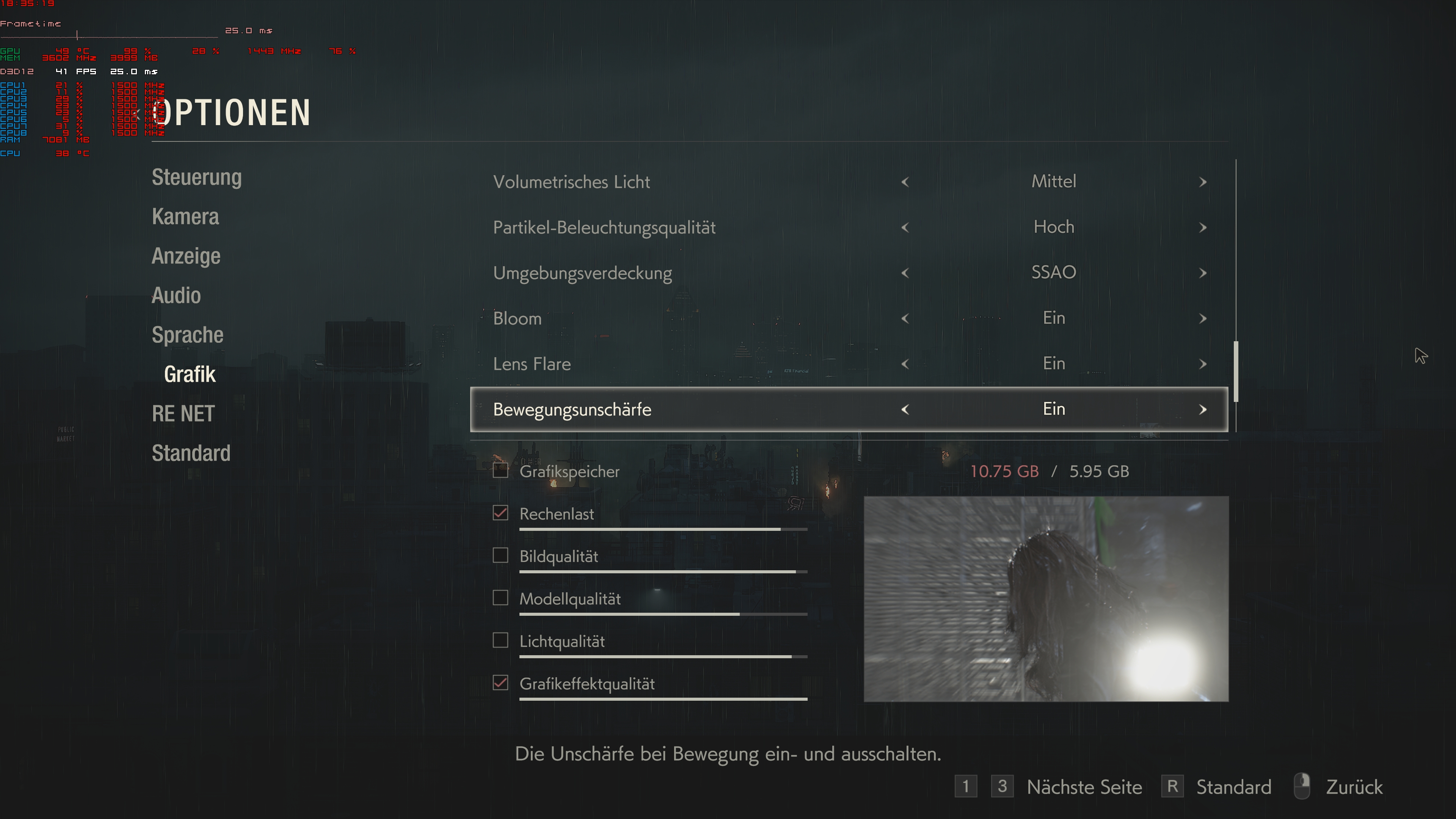 fps 35-45 - man kann viel einstellen - das raus schreiben - fehlt mir die muse - ach, ich häng se mal dran..