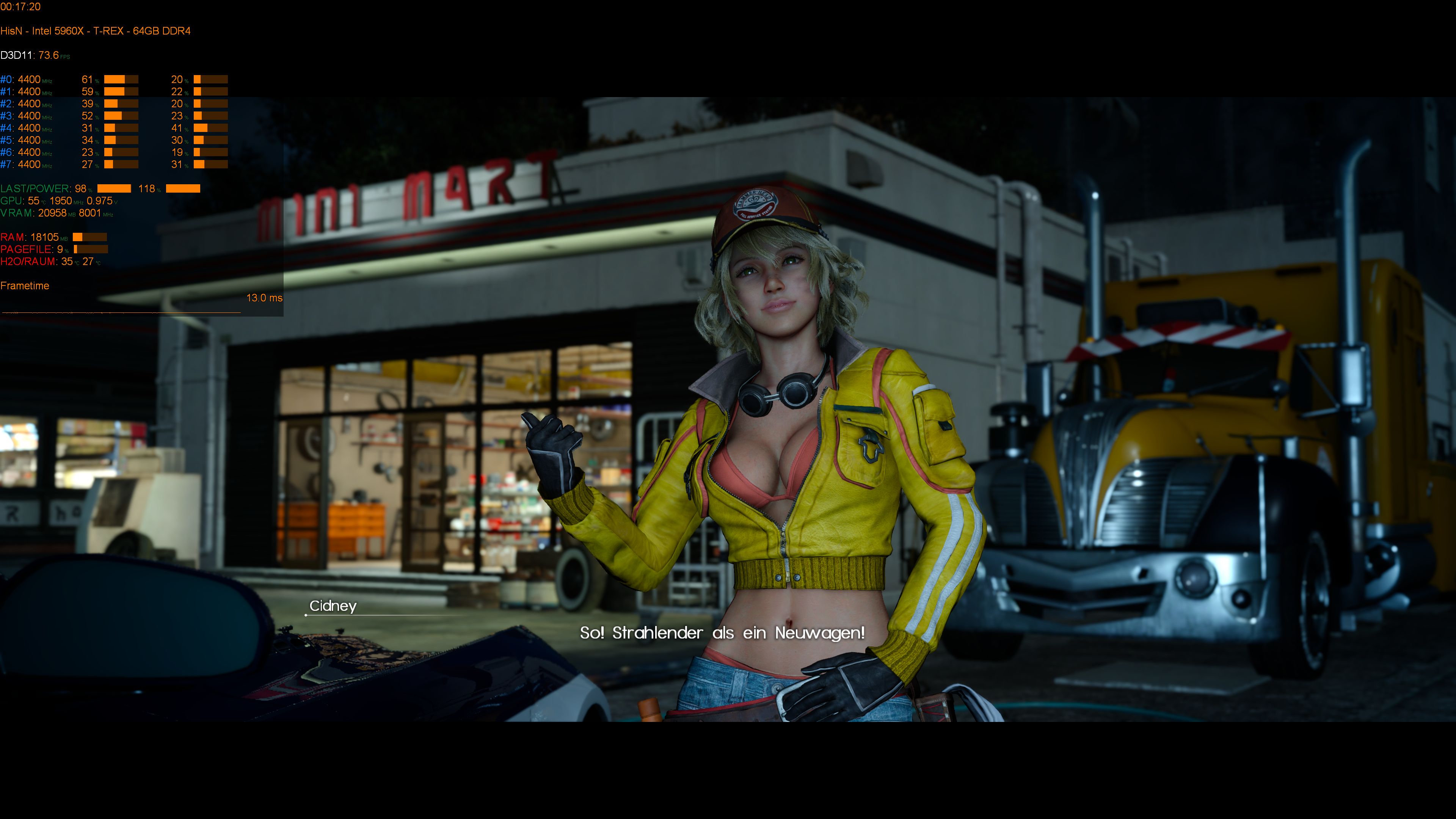 Und noch schnell der Gegentest mit nur 10GB geklautem Speicher. Nicht das jemand erzählt, es wäre das Tool, das die Rechenzeit beansprucht. Macht es nicht. Ich liege wieder bei 95 FPS und 13GB RAM sowie 10 GB + 8GB VRAM. Also macht das Tool genau das was es soll, und beeinflusst nicht mehr.