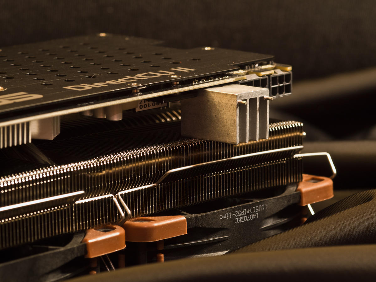 Dies erklärt wohl auch die Ineffizienz des Standardkühlers von ASUS, denn der Körper scheint die zu kühlenden SpaWas nur schlecht bis gar nicht zu berühren. In dem Fall bräuchte man also wieder ein höheres Wärmeleitpad, um die Unebenheiten auszugleichen.