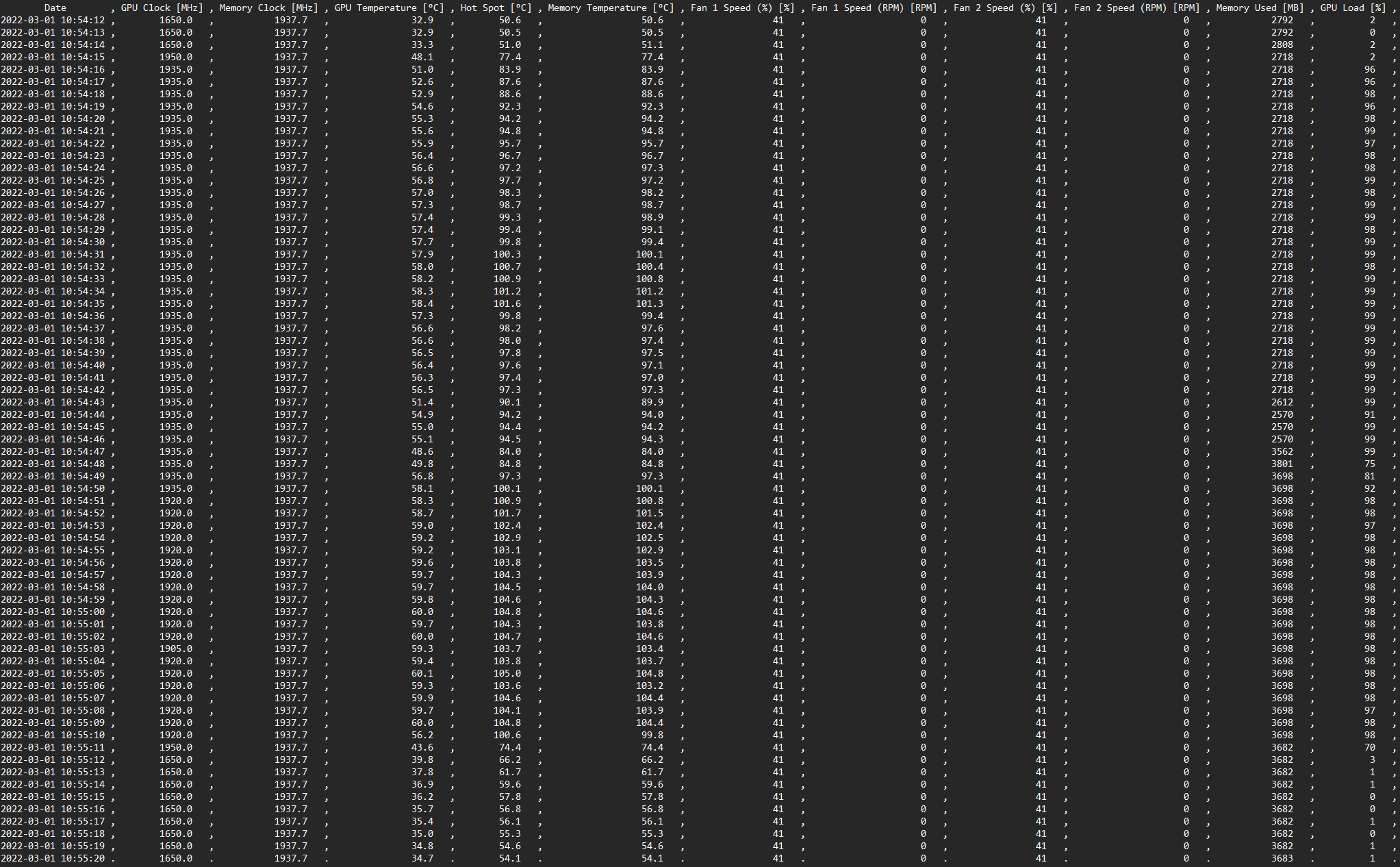 Bei Rainbow Six Siege(Vulkan mit DLSS Quality) wird mir von HWmonitor eine Memory Temperatur von sage und schreibe 106° im Menü des Spiels angezeigt, habe HWinfo die gleiche Temperatur als "HotSpot"(im HW Monitor ist der HotSpot manchmal etwas höher als die "Memory" Temperatur)