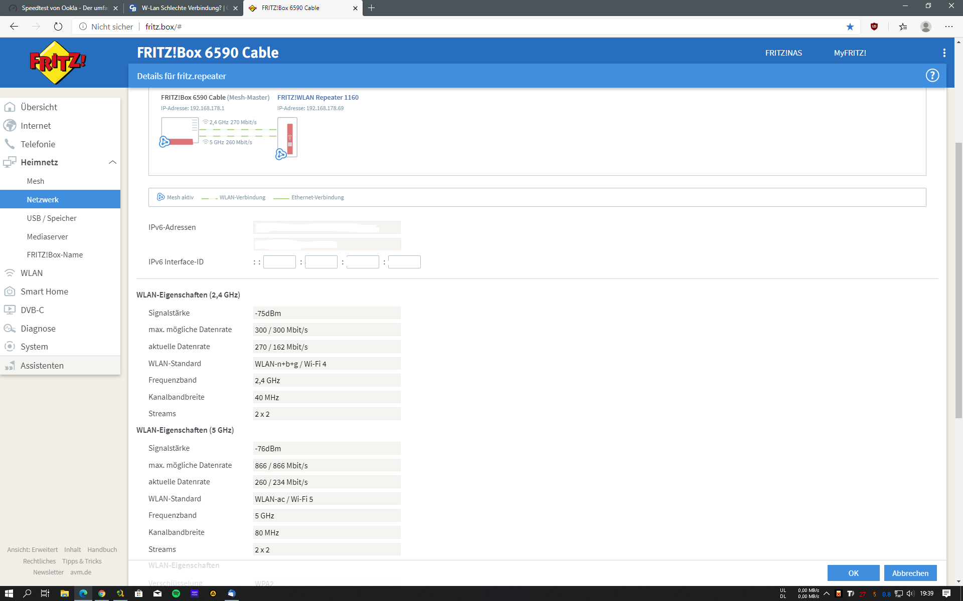 Die Verbindungs Anzeige ist bei 5 Ghz schlechter als bei 2,4 Ghz, obwohl keine Wand im weg ist.