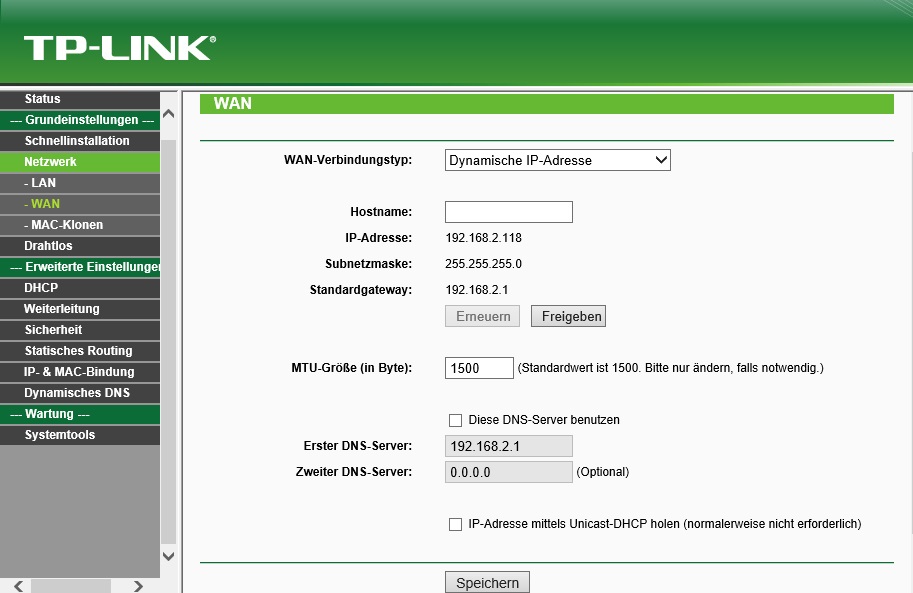 Wenn ich aber den Laptop neu in das Netzwerk des TP-Link Routers einwählen lasse kommt keine Verbindung zustande (es wird nicht die richtige IP Adresse zugewiesen s.u.). Ich muss immer erst den Laptop über Kabel anschließen und dann geht die W-Lan Verbindung auch und ich kann das Kabel wieder abziehen.