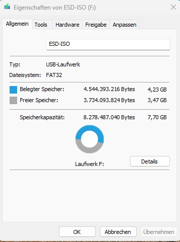 Danach erstelle ich den Stick (mittels MCT) mit dem Setup (Windows 10).
