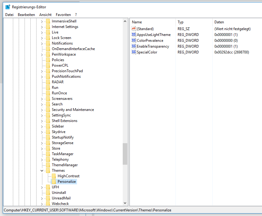 ich hatte damals vorm An-Update diesen registry eintrag erstellt um das schwarze theme zu benutzen. kann das damit zusammen hängen?