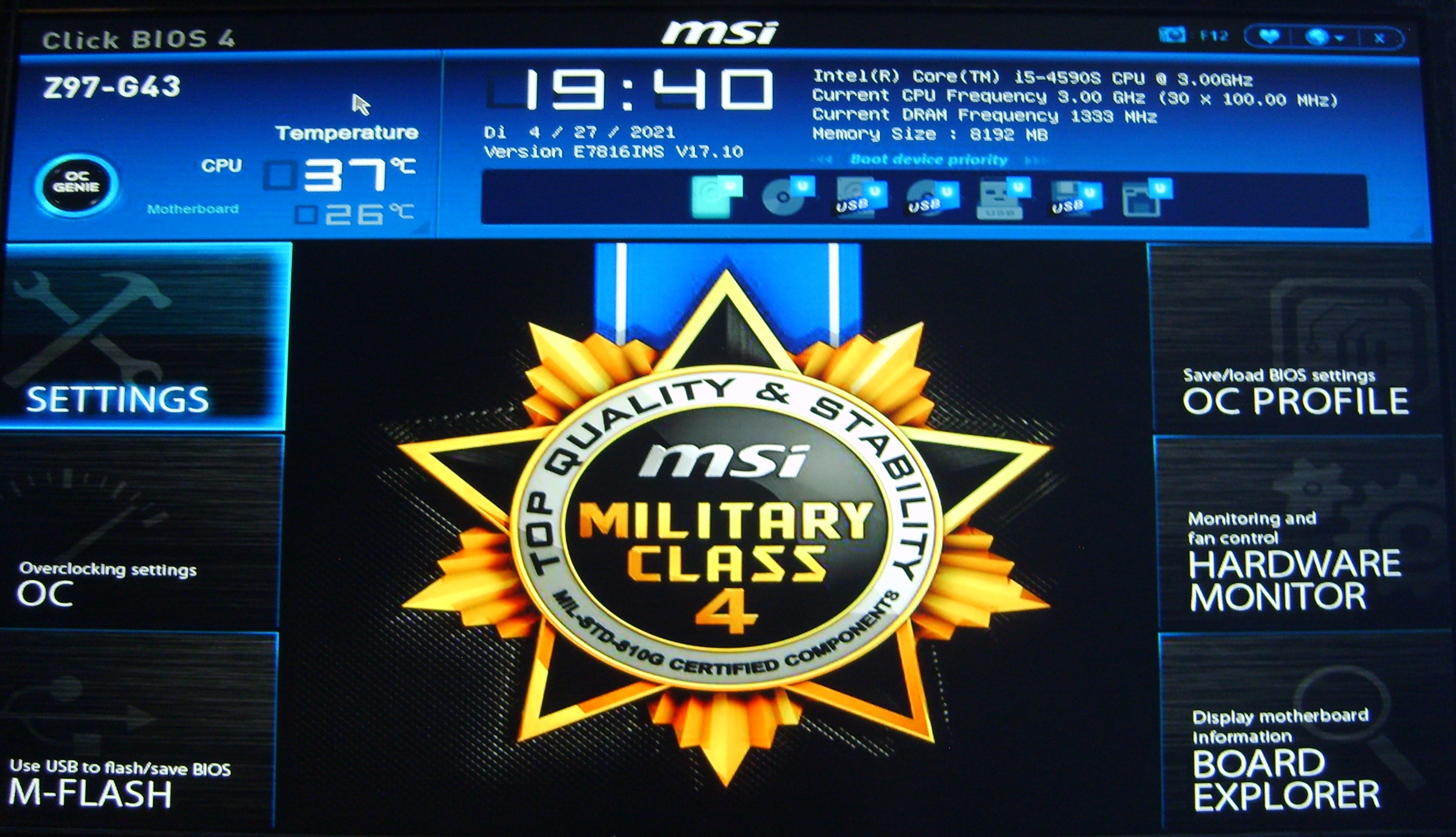 möchte gerne ein Mainboard MSI (Z97-G43) verwenden/starten, das grundsätzlich auch schon funktioniert, solange ich den PC nicht wieder ausschalte, denn beim Wiedereinschalten gibt es kein W10 mehr, nichts. Folgendes war geschehen: