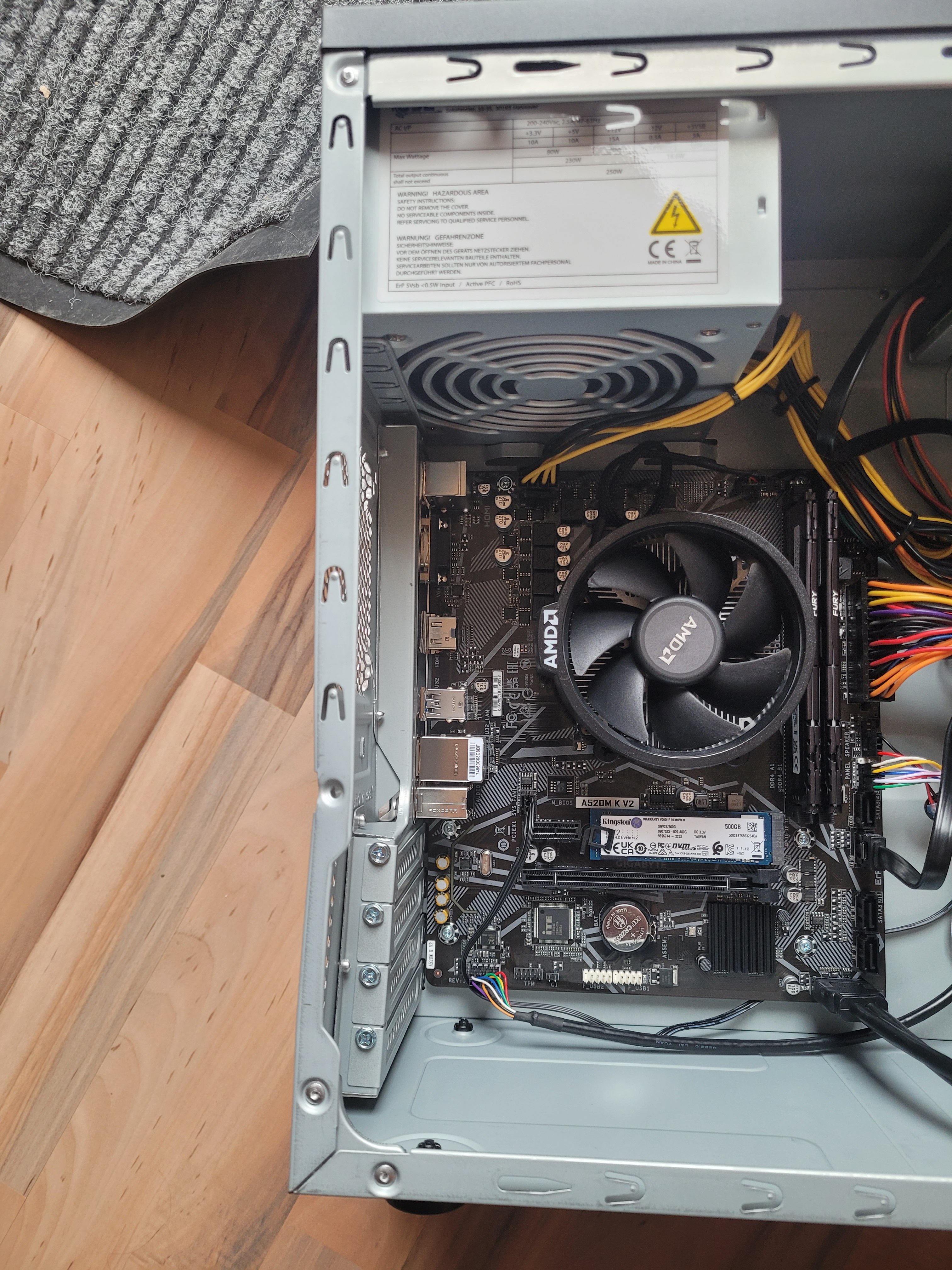 SATAs: 500 GB SSD M2, 120 GB SSD, 1 TB HDD (letzten beiden vom alten PC, formatiert).