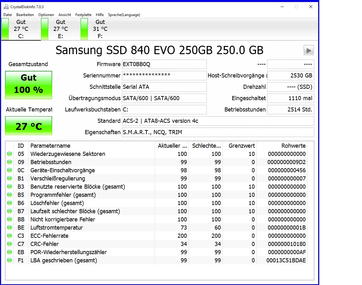 1 C System Samsung 840 NTFS Partition 231 GB fehlerfrei