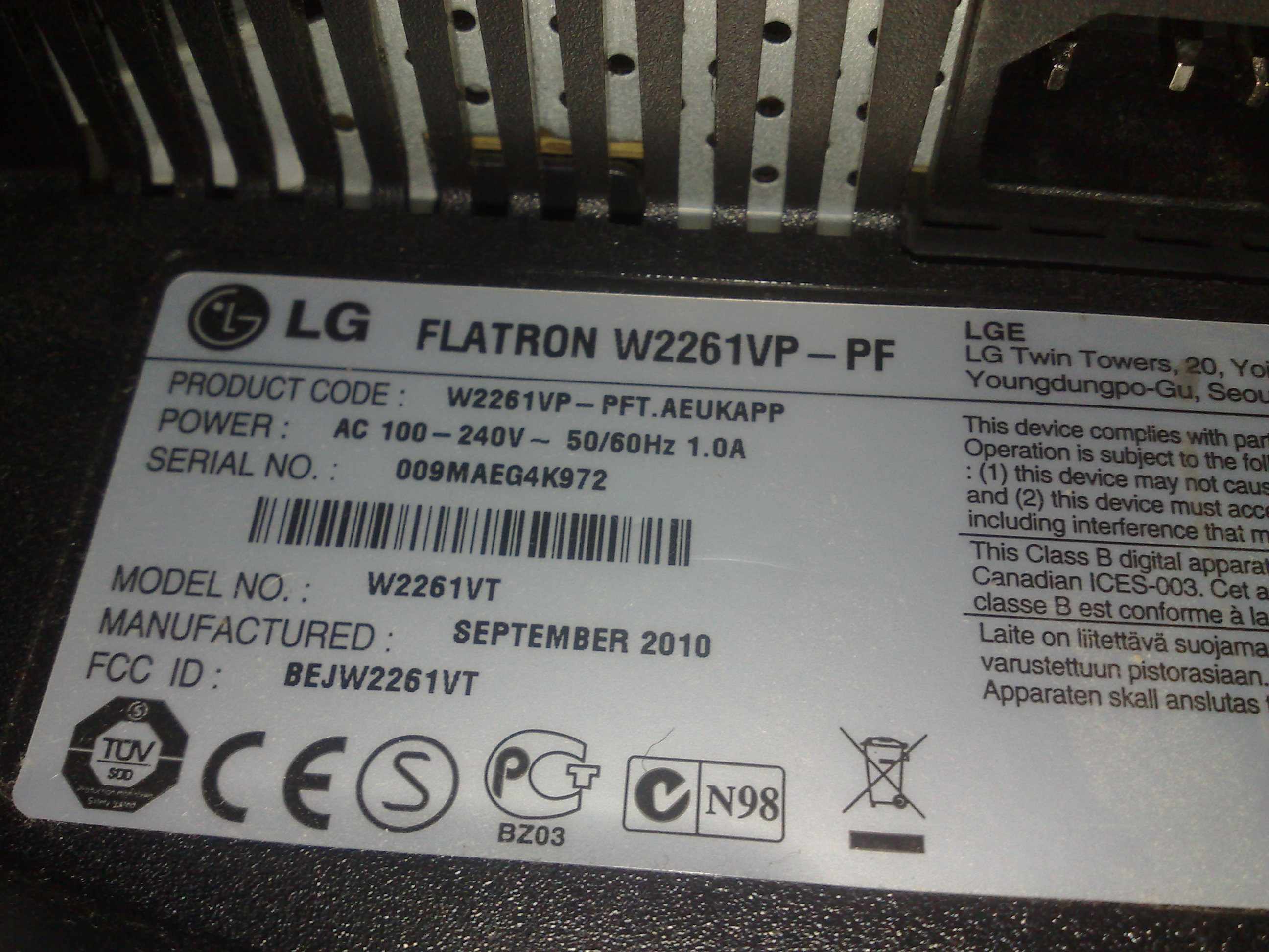 Mein Monitor W2261VP geht nicht mehr an.. habe zwei solche W2261VP.