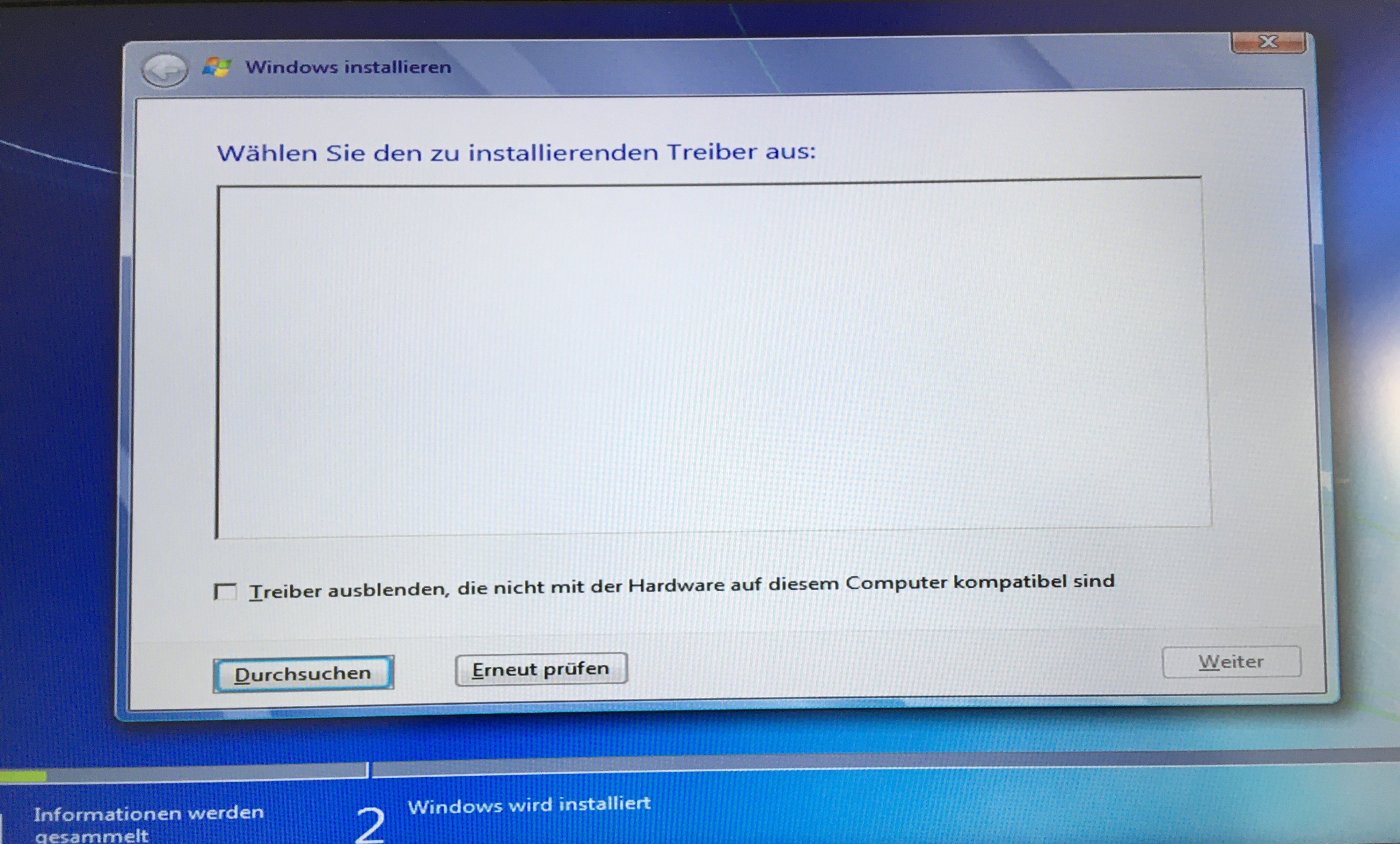 Ich habe mir bereits zwei Boot Sticks mit W7U erstellt, die auch beide den Computer hochfahren, eine von einer ganz normalen Windows-7-ISO, und einen mit UEFI-Boot. Doch leider sehe ich keine Festplatte/SSD (siehe Bild), mit keinem der beiden.