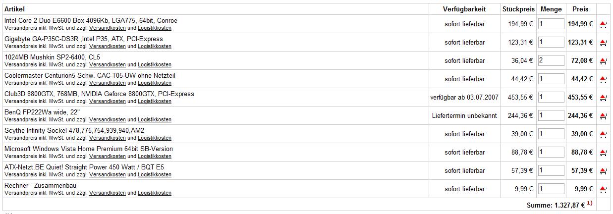 Die oben genannte Hardware habe ich mir im K&M Shop Köln ausgewählt....käme da auf einen Gesamtpreis von 1556,52 € wobei ich höchst wahrscheinlich erst in 1-2 Monaten kaufen werde. Deswegen kann sich da auch noch was tun bezüglich der Komponenten.