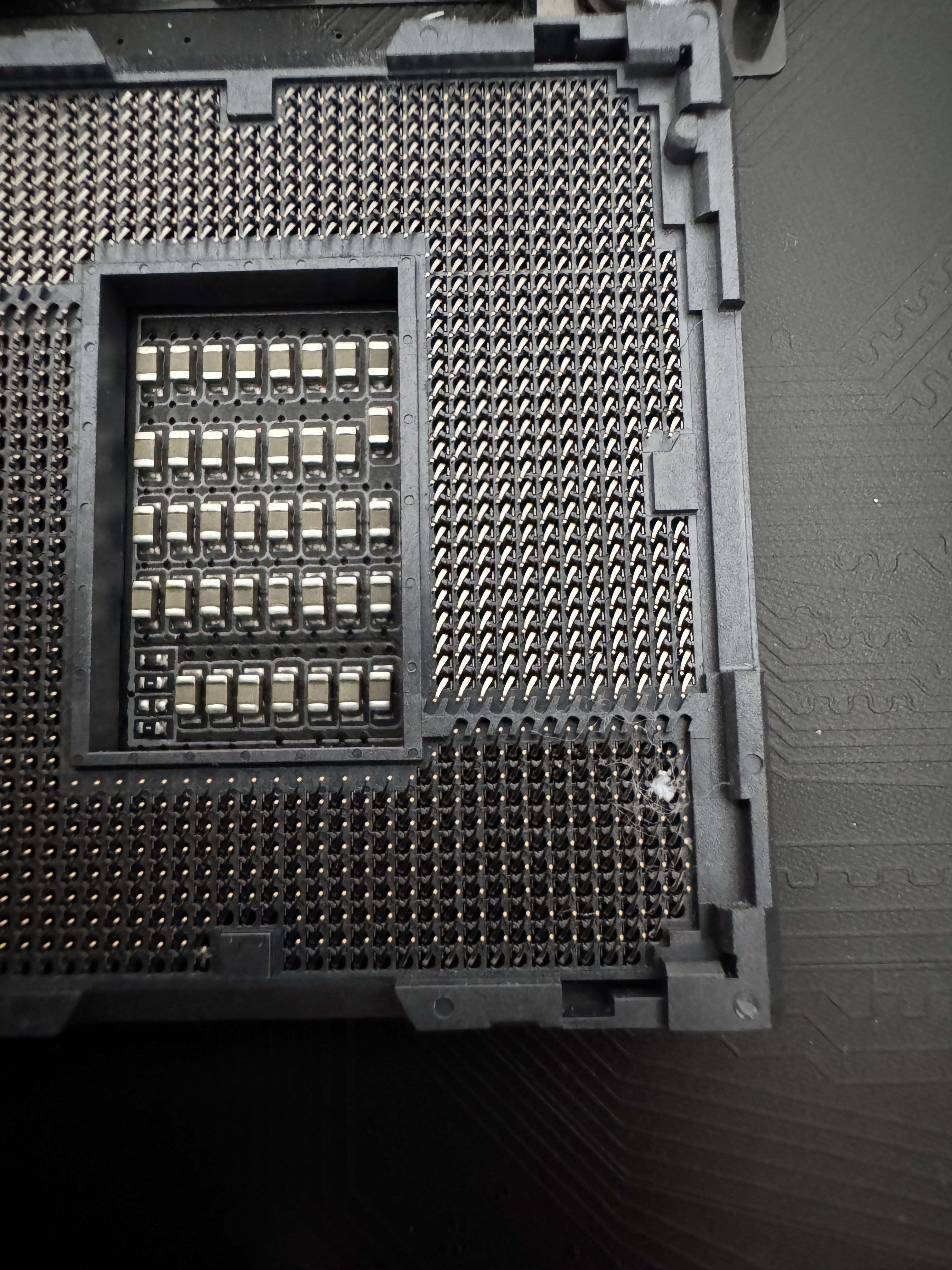 Bei der Demontage der CPU ist mir ein Stück trockene Wärmeleitpaste auf den Sockel gefallen.