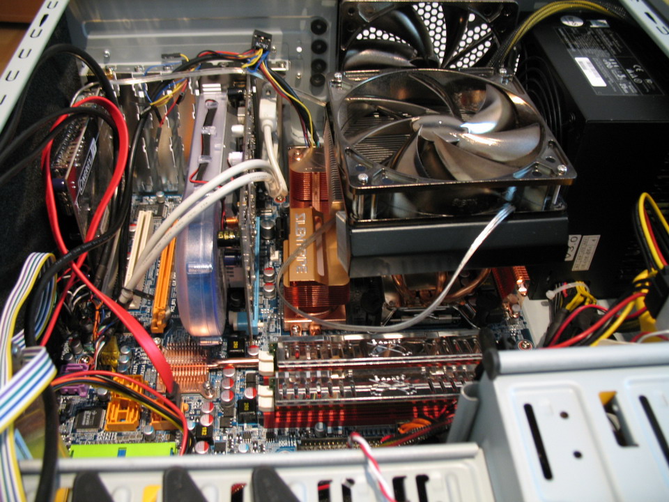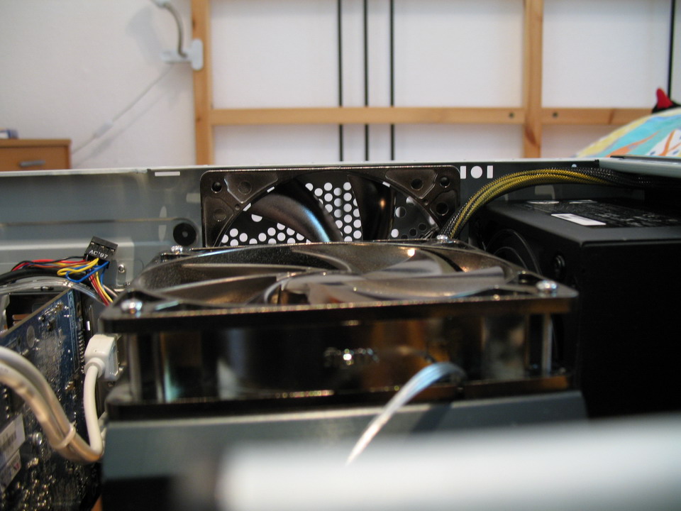 1. Der Lüfter auf dem CPU-Kühler hat zu wenig Platz nach oben. Zwischen Lüfter und Seitenwand ist etwa nur ein knapper 1cm Platz und wenn ich mein Gehäuse offen habe läuft die CPU nur bei ~50Grad (Prime).