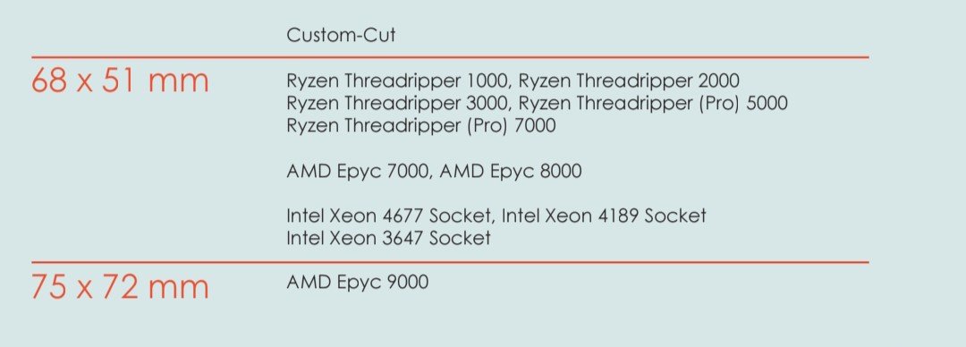 Schau doch einfach mal auf der Seite von thermal grizzly, das ist auch ein Produkt von denen, da findest du auch die verschiedenen Größen zu den verschiedenen CPUs oder auch GPUs.